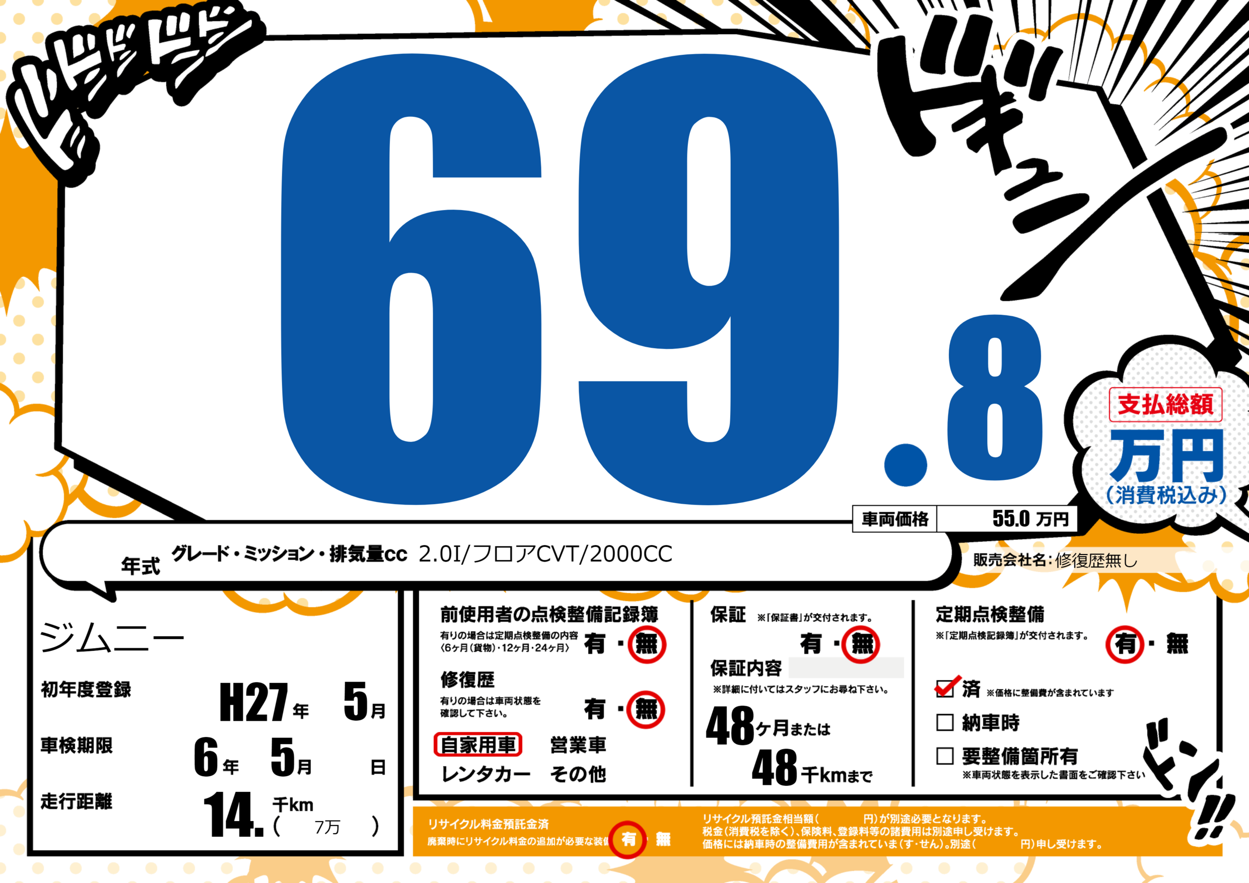 | 定期点検整備 | 定期点検整備あり 定期点検整備済み | ||