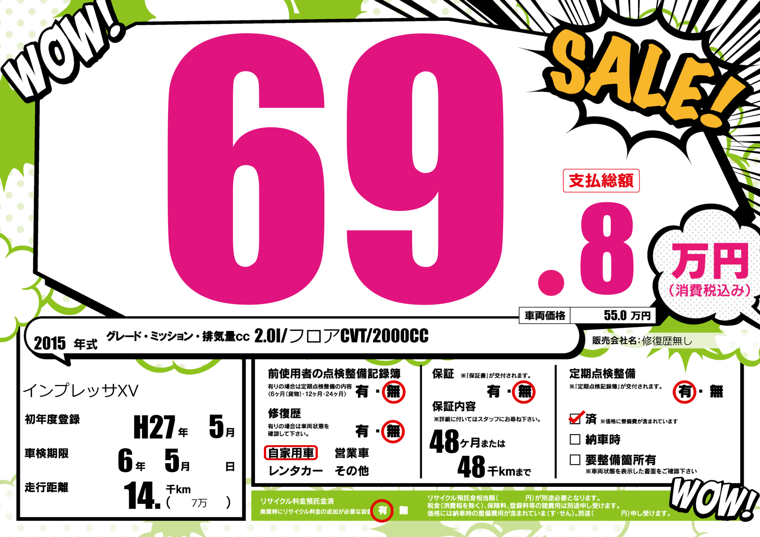| 定期点検整備 | 定期点検整備あり 定期点検整備済み | ||