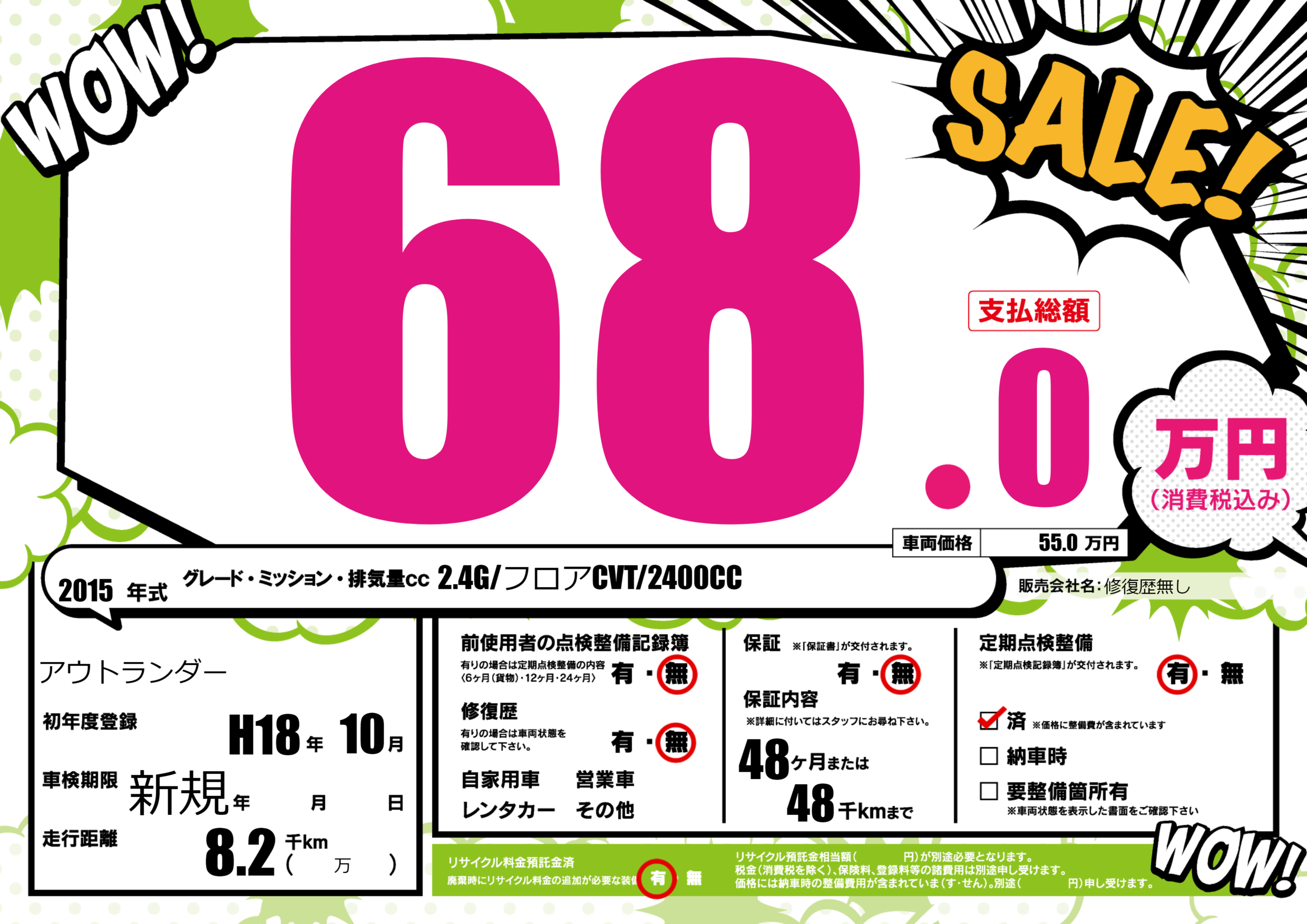| 定期点検整備 | 定期点検整備あり 定期点検整備済み | ||
