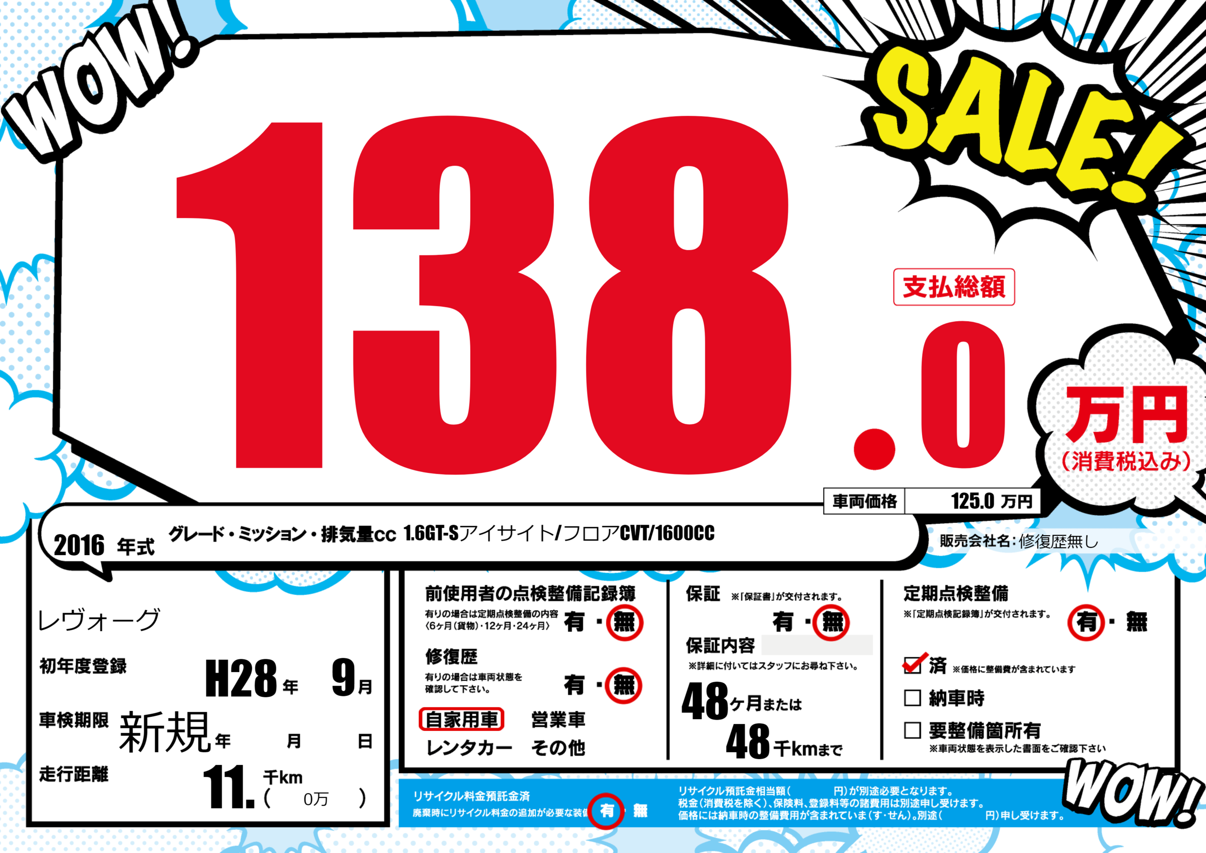 | 定期点検整備 | 定期点検整備あり 定期点検整備済み | ||