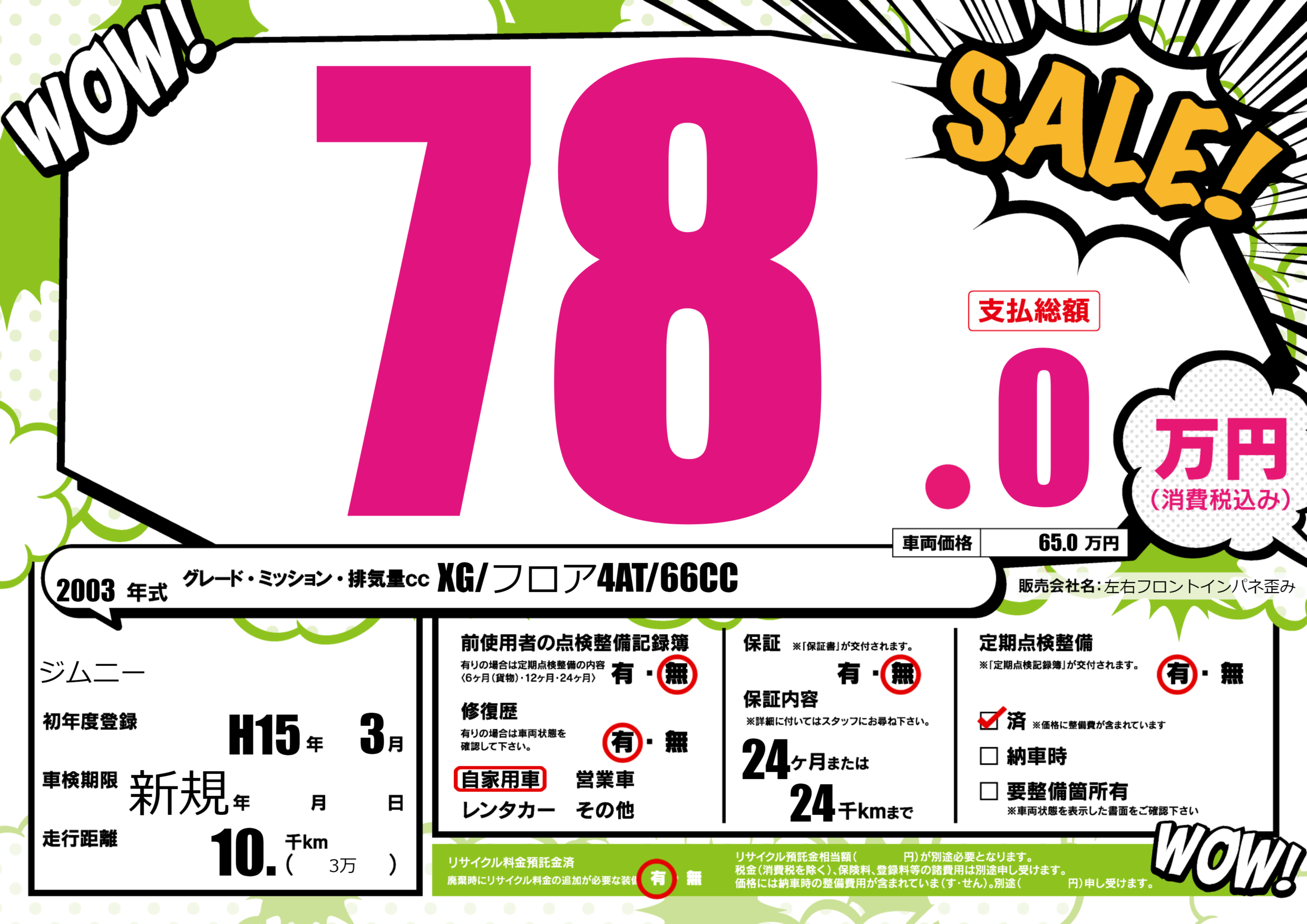 | 定期点検整備 | 定期点検整備あり 定期点検整備済み | ||