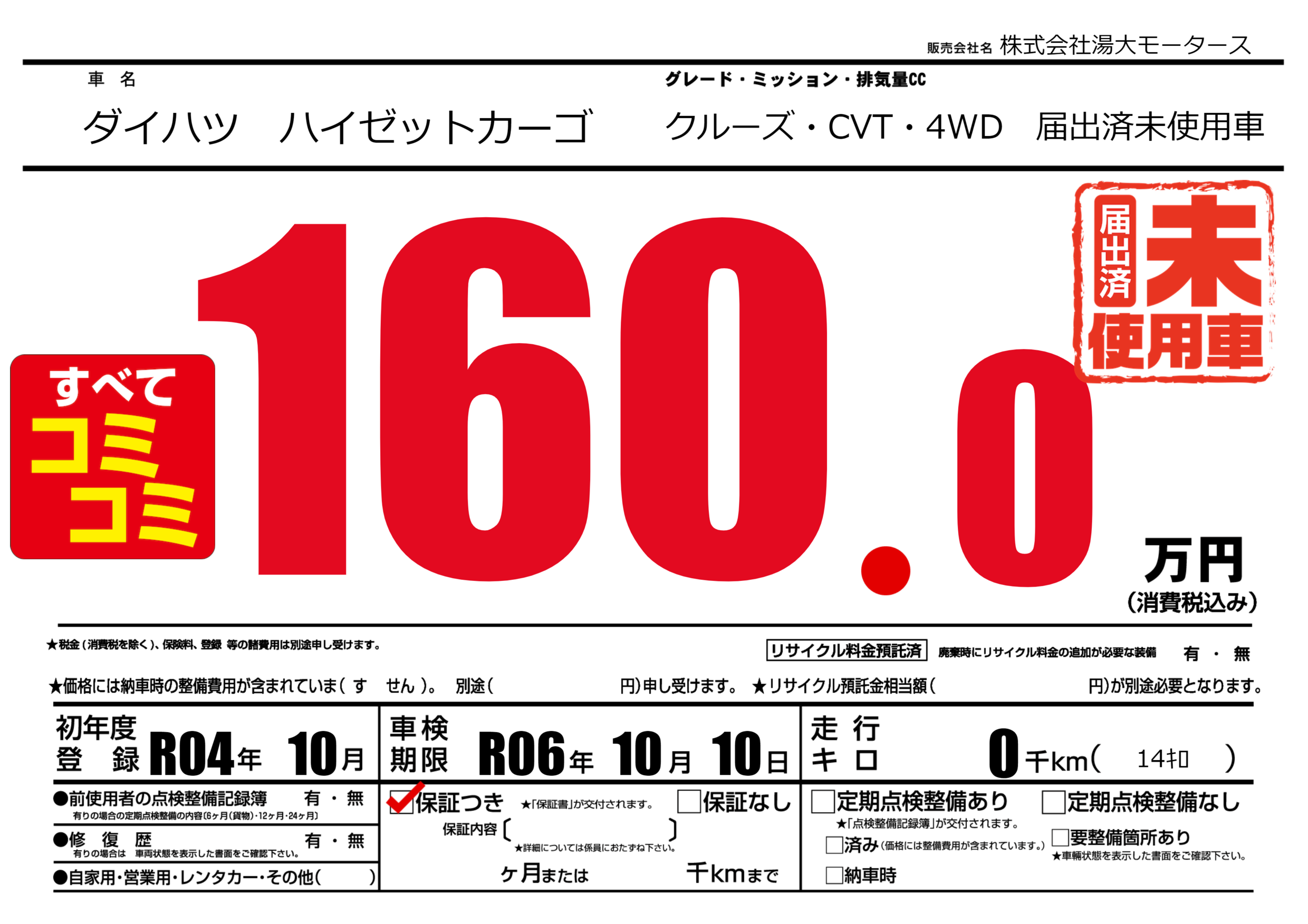 保証付き 保証内容() ヶ月または千km |