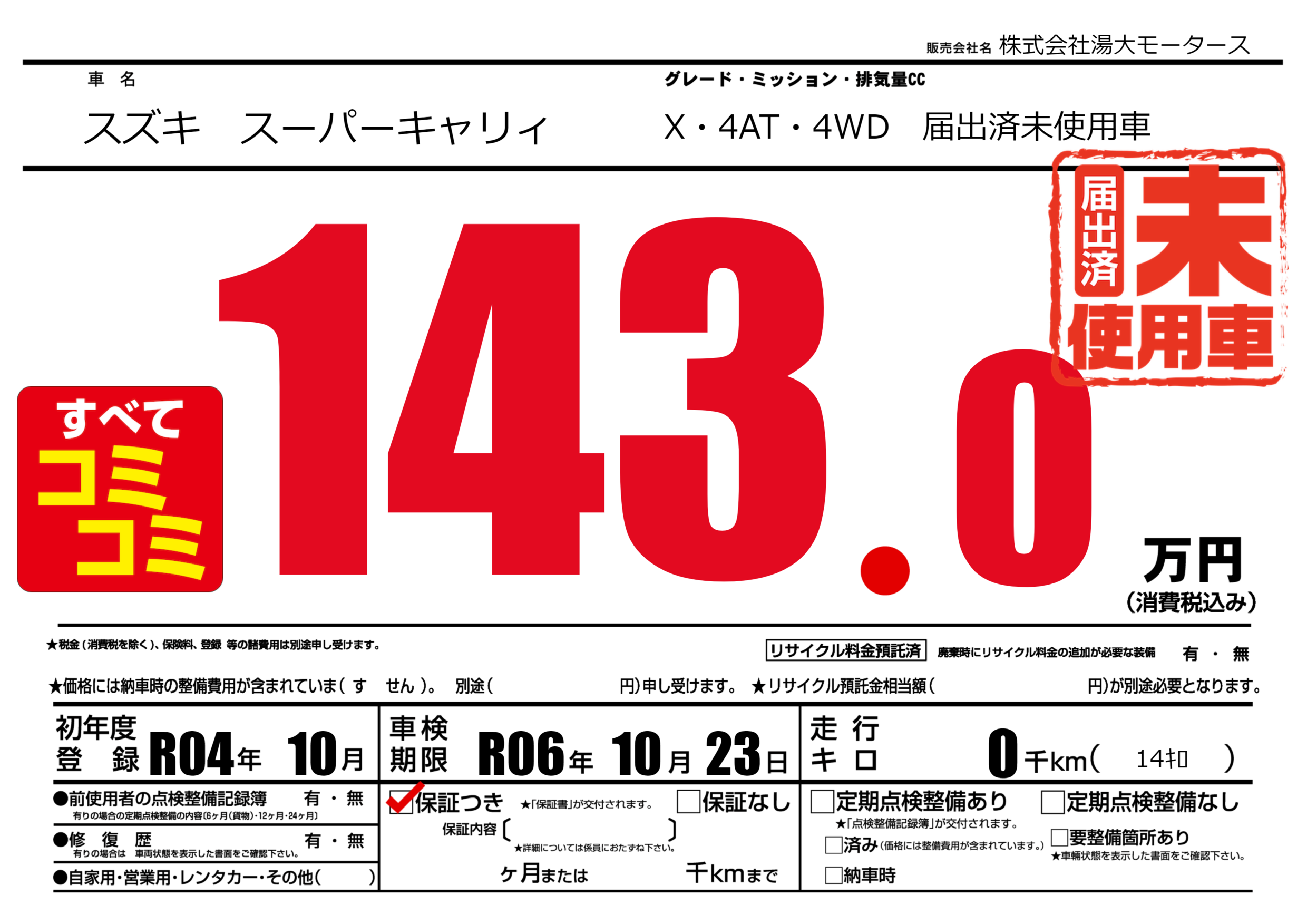 | 車名 | スズキ スーパーキャリィ | グレード ミッション 排気量 |