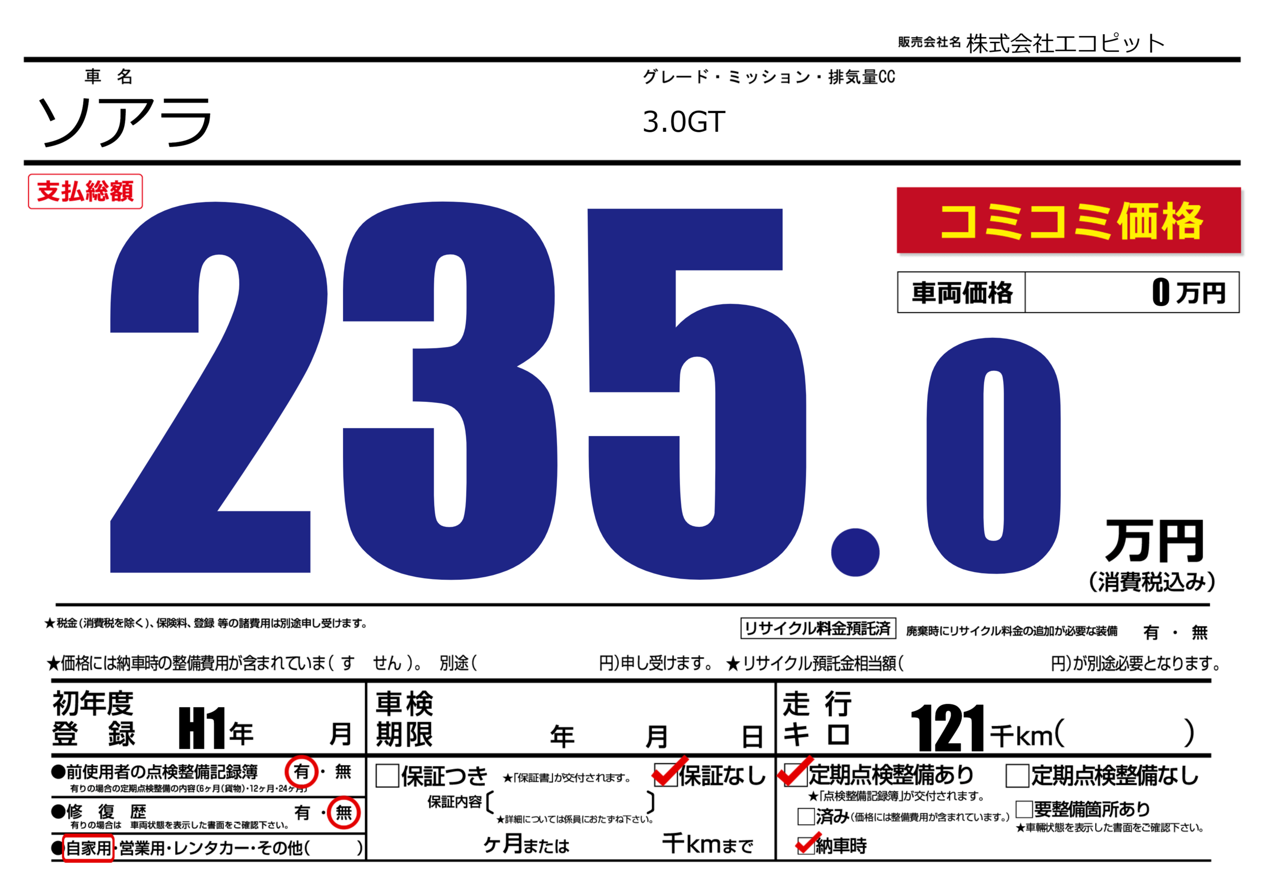 | 走行キロ | 12.1万km | 初年度登録 | H1年---月 |