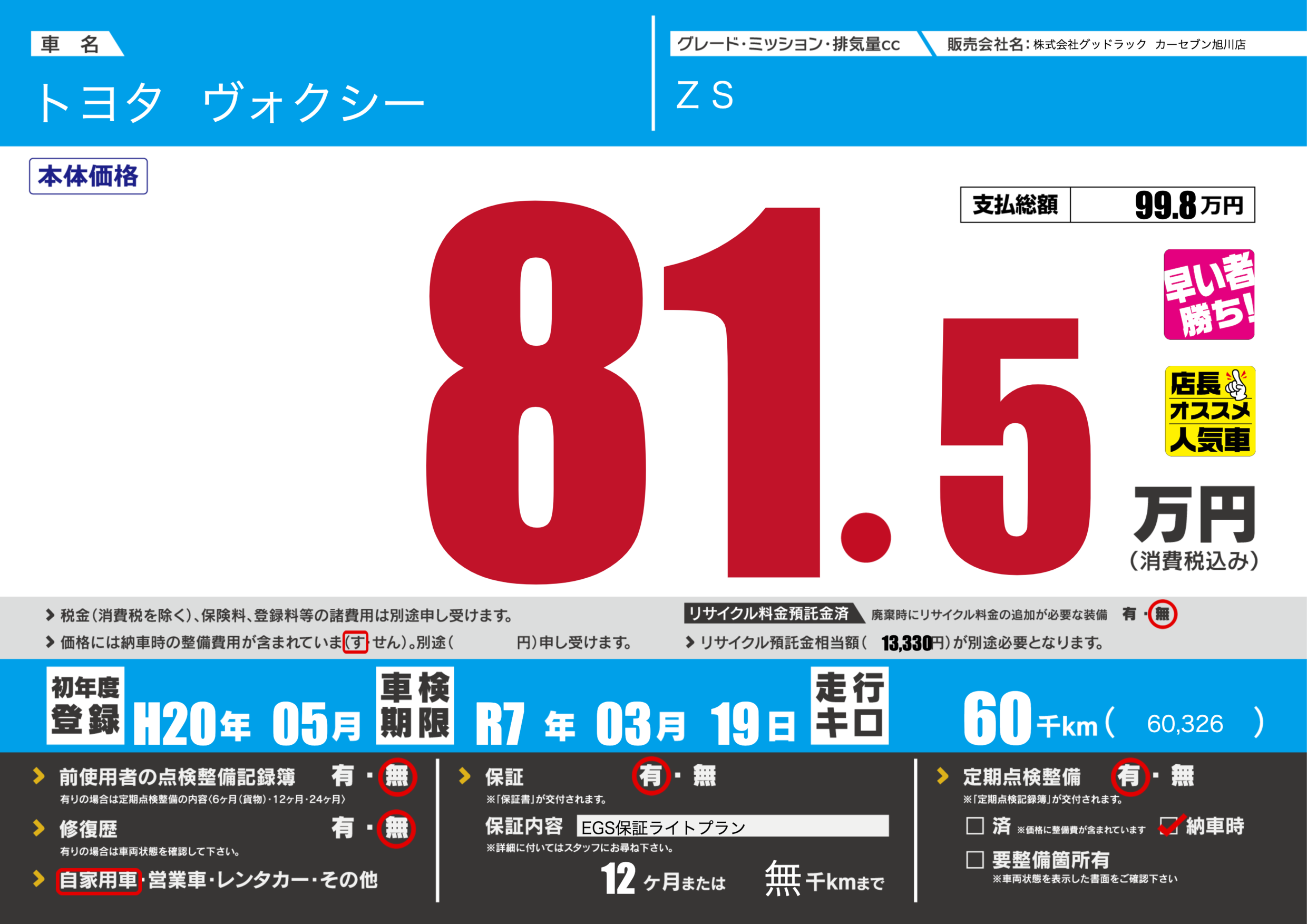 | 車検制限 | R7年 03月 19日 | ||