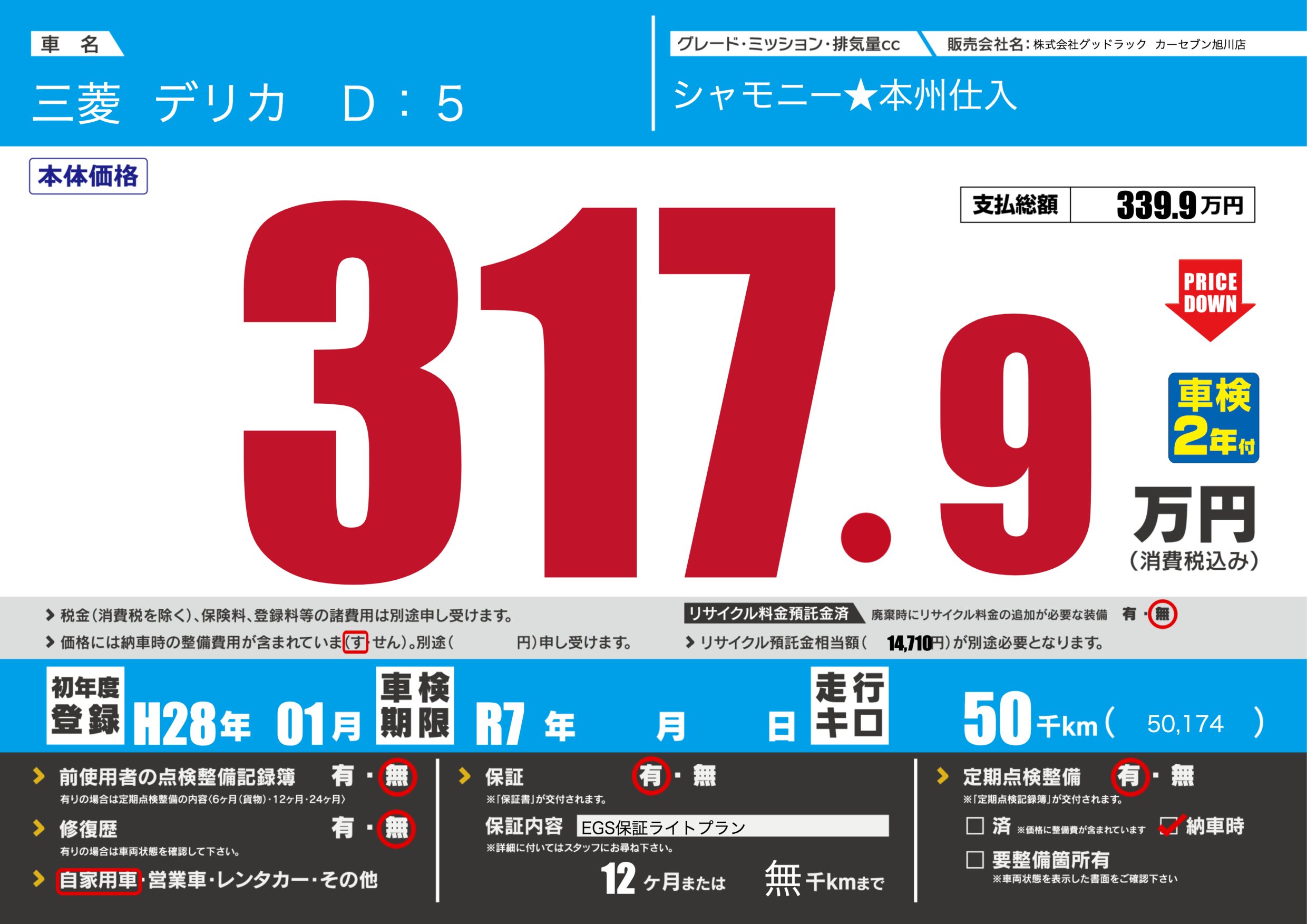 | 走行キロ | 5万km | ||