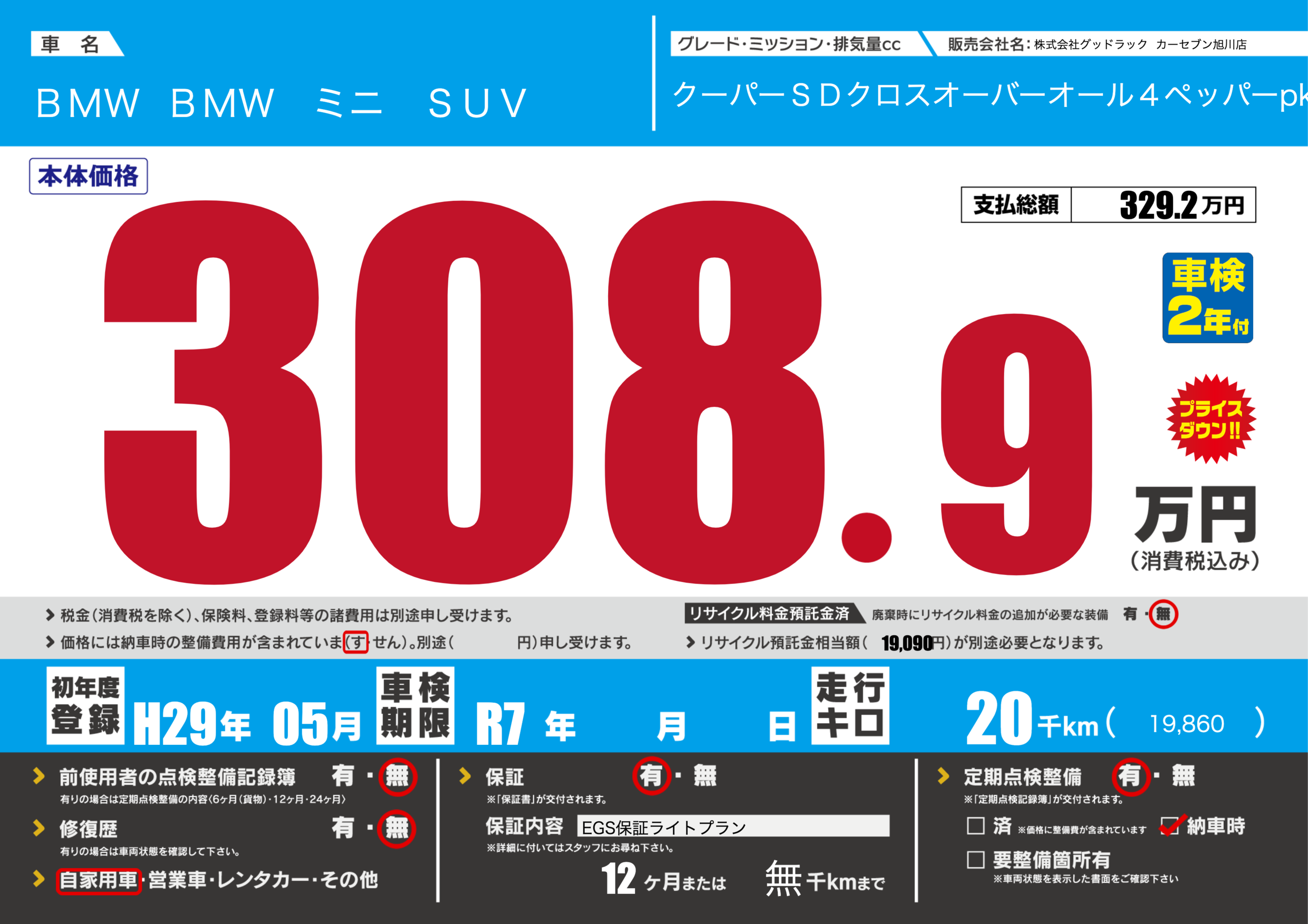 | 車名 | BMW BMW ミニ SUV | グレード ミッション 排気量 |