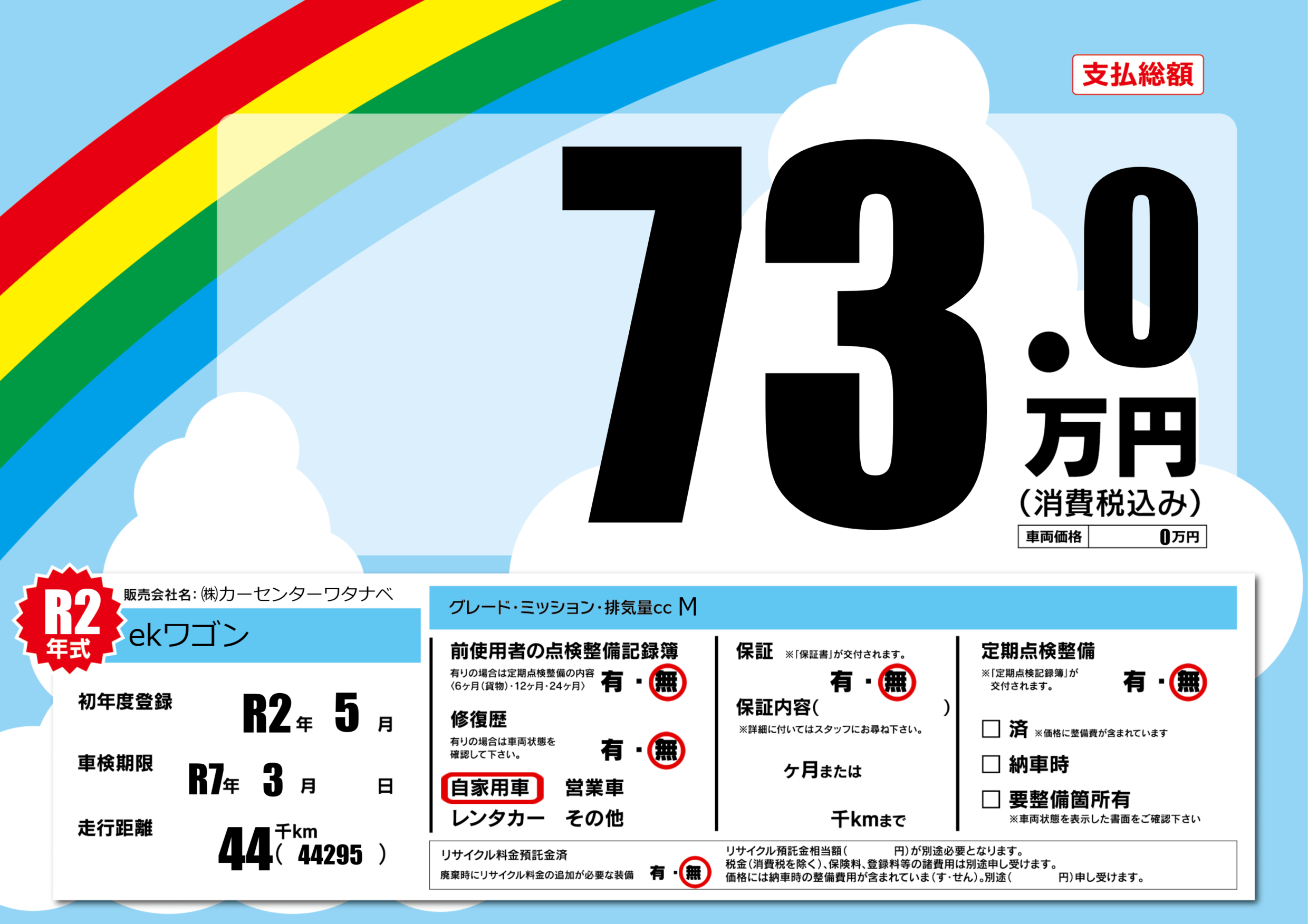 | 車検制限 | R7年 3月 - 日 | ||