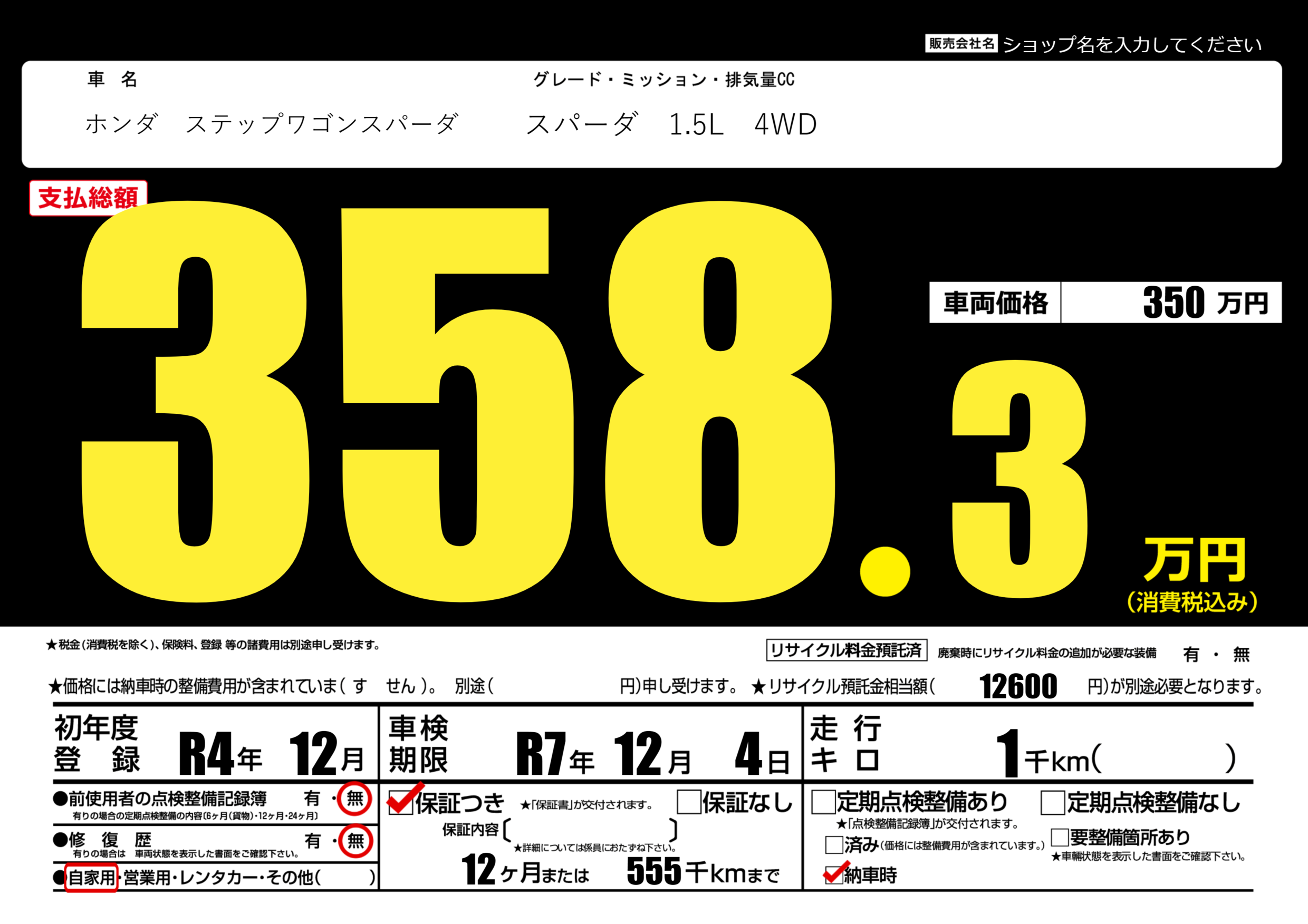 | 走行キロ | 0.1万km | 初年度登録 | R4年12月 |