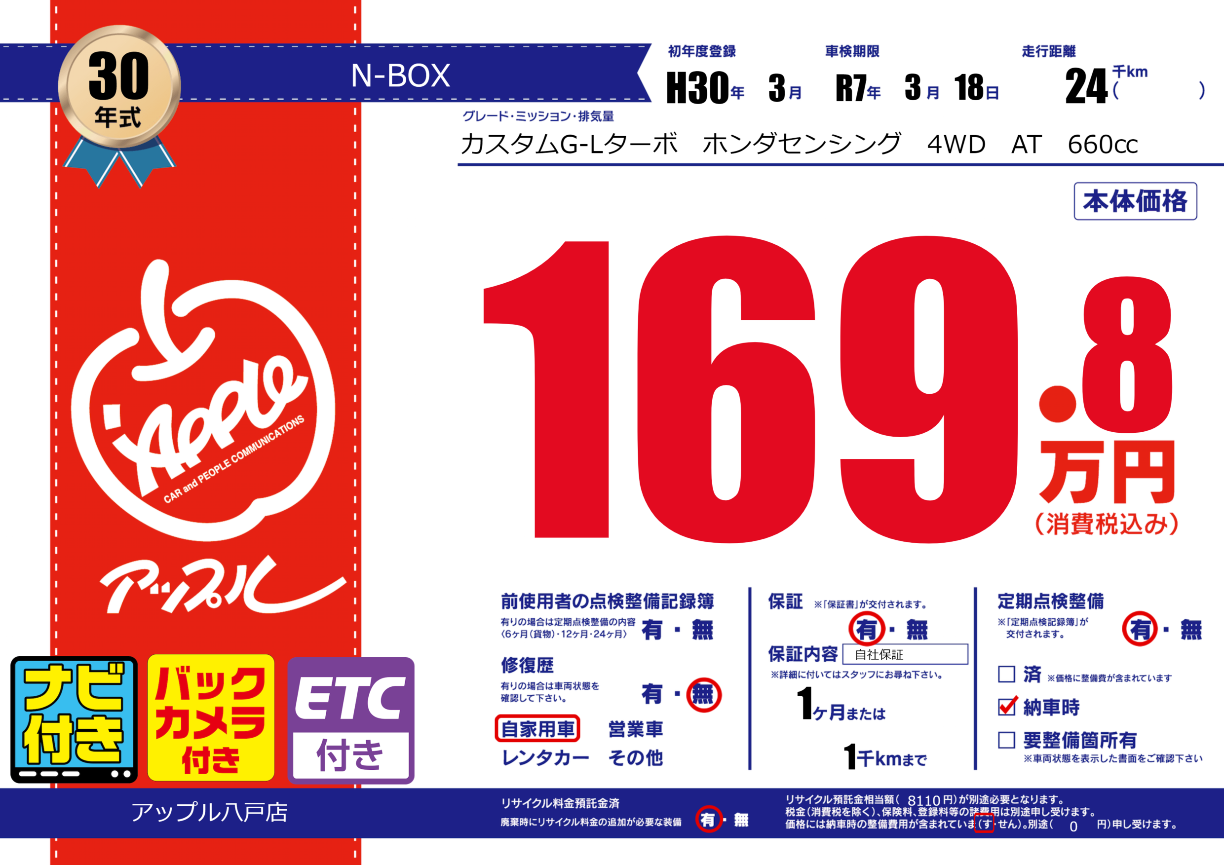 保証付き 保証内容( 自社保証) 1ヶ月または1千km |