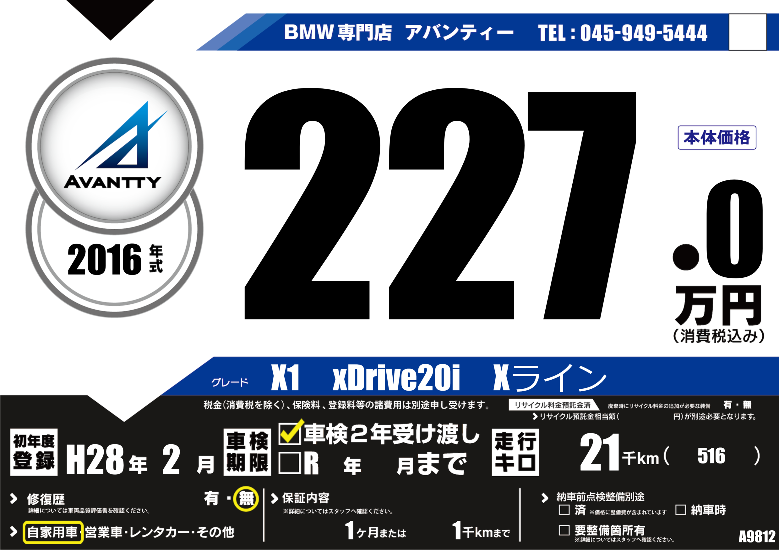 | 走行キロ | 2.1万km | 初年度登録 | H28年2月 |