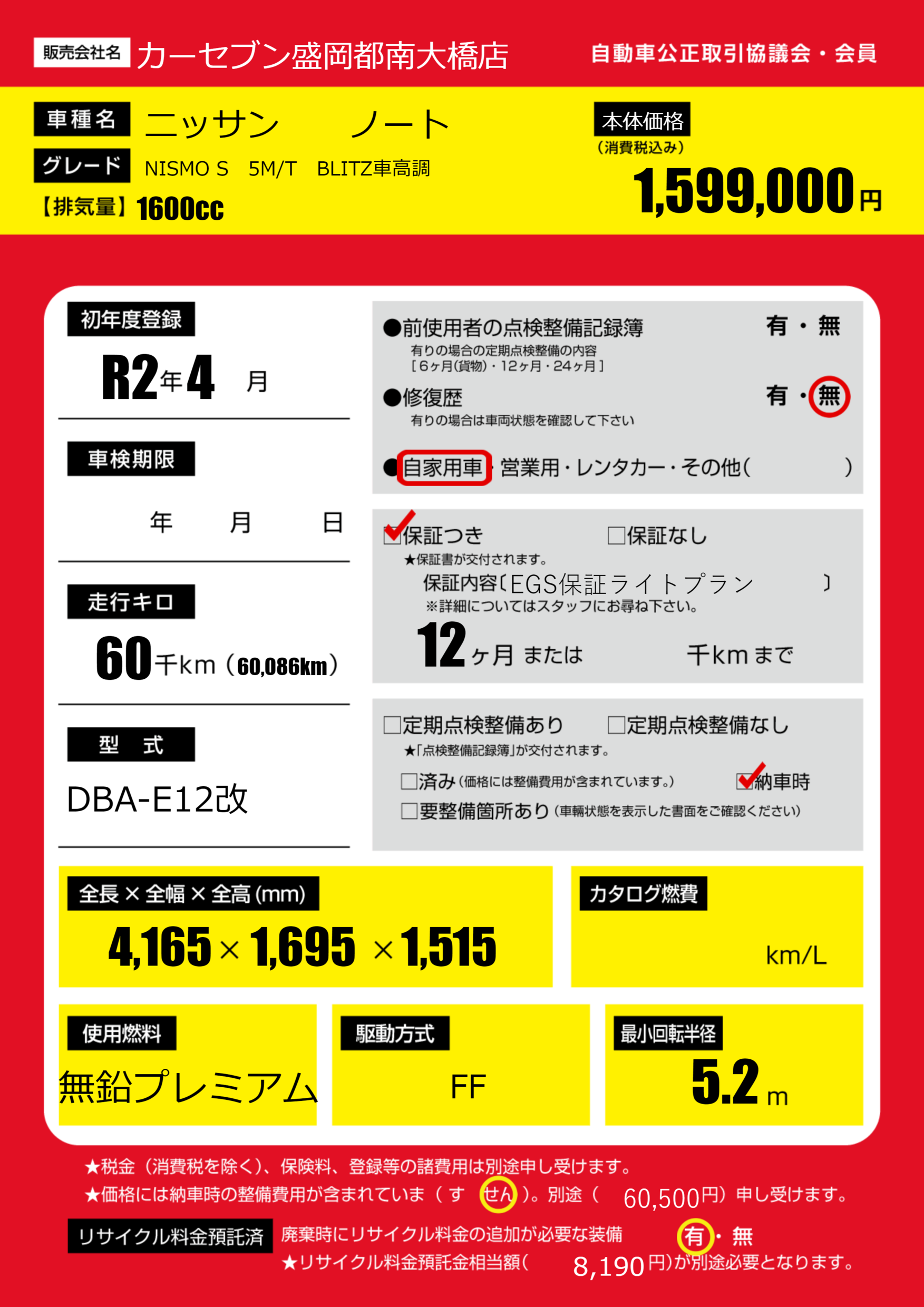 定期点検整備 納車時あり