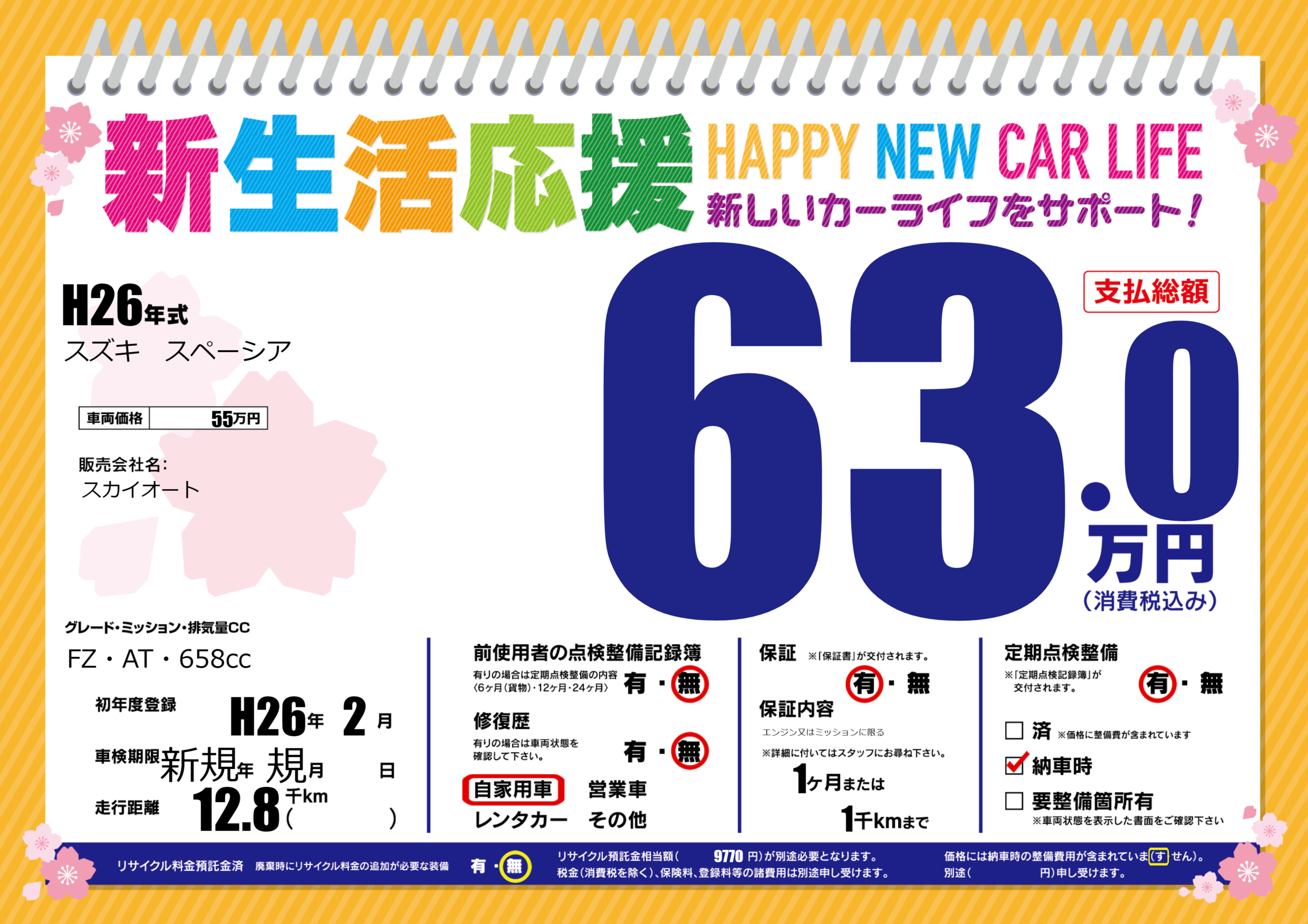 | 定期点検整備 | 定期点検整備あり 納車時あり | ||