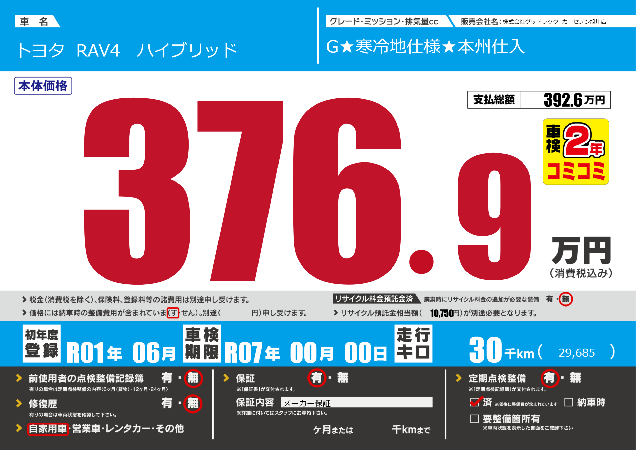 | 定期点検整備 | 定期点検整備あり 定期点検整備済み | ||