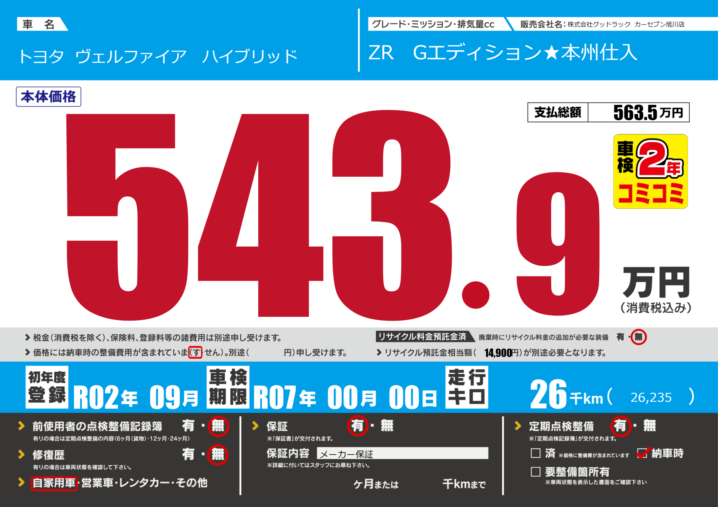 | 走行キロ | 2.6万km | 初年度登録 | R02年09月 |