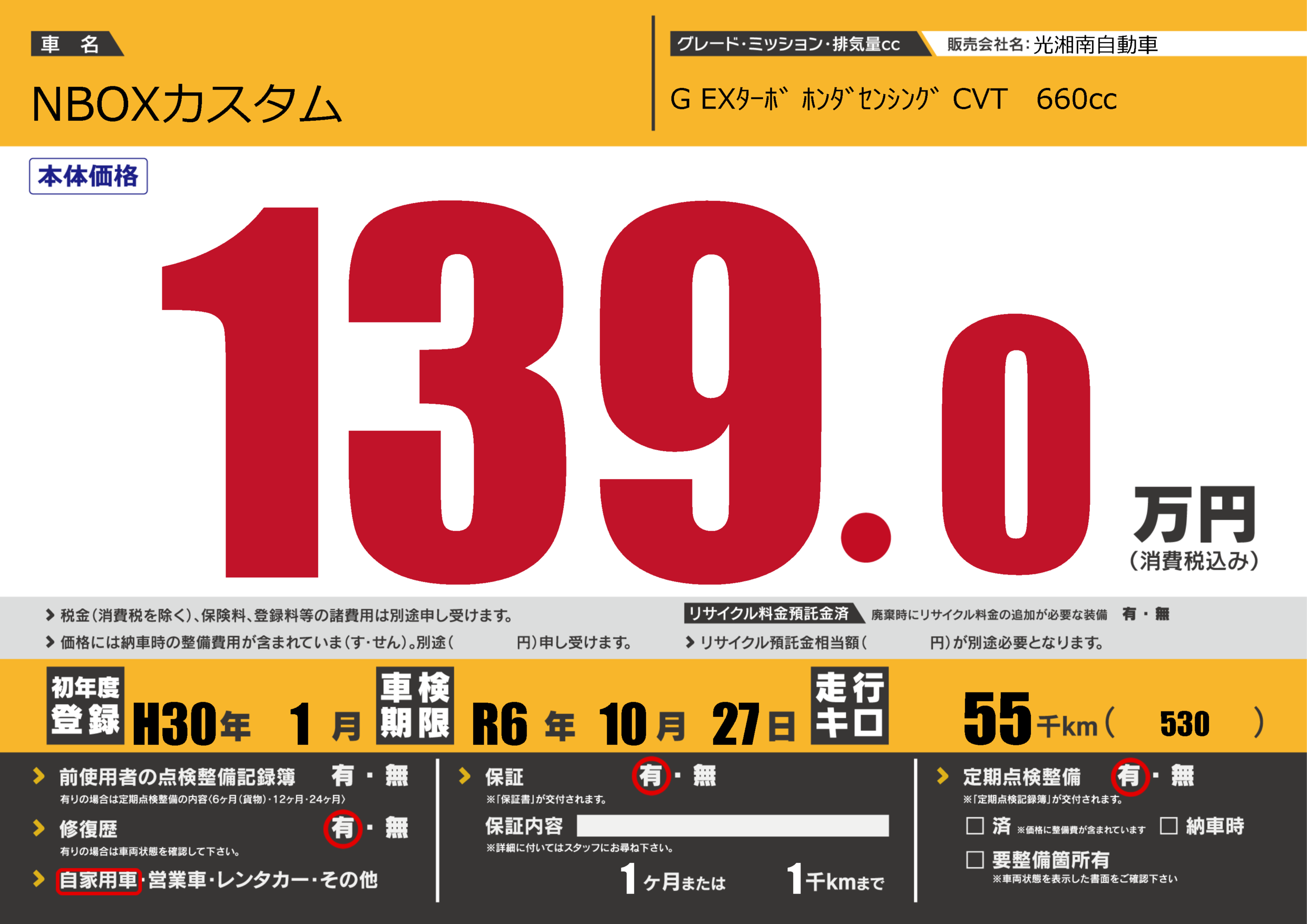 | 定期点検整備 | 定期点検整備あり | ||