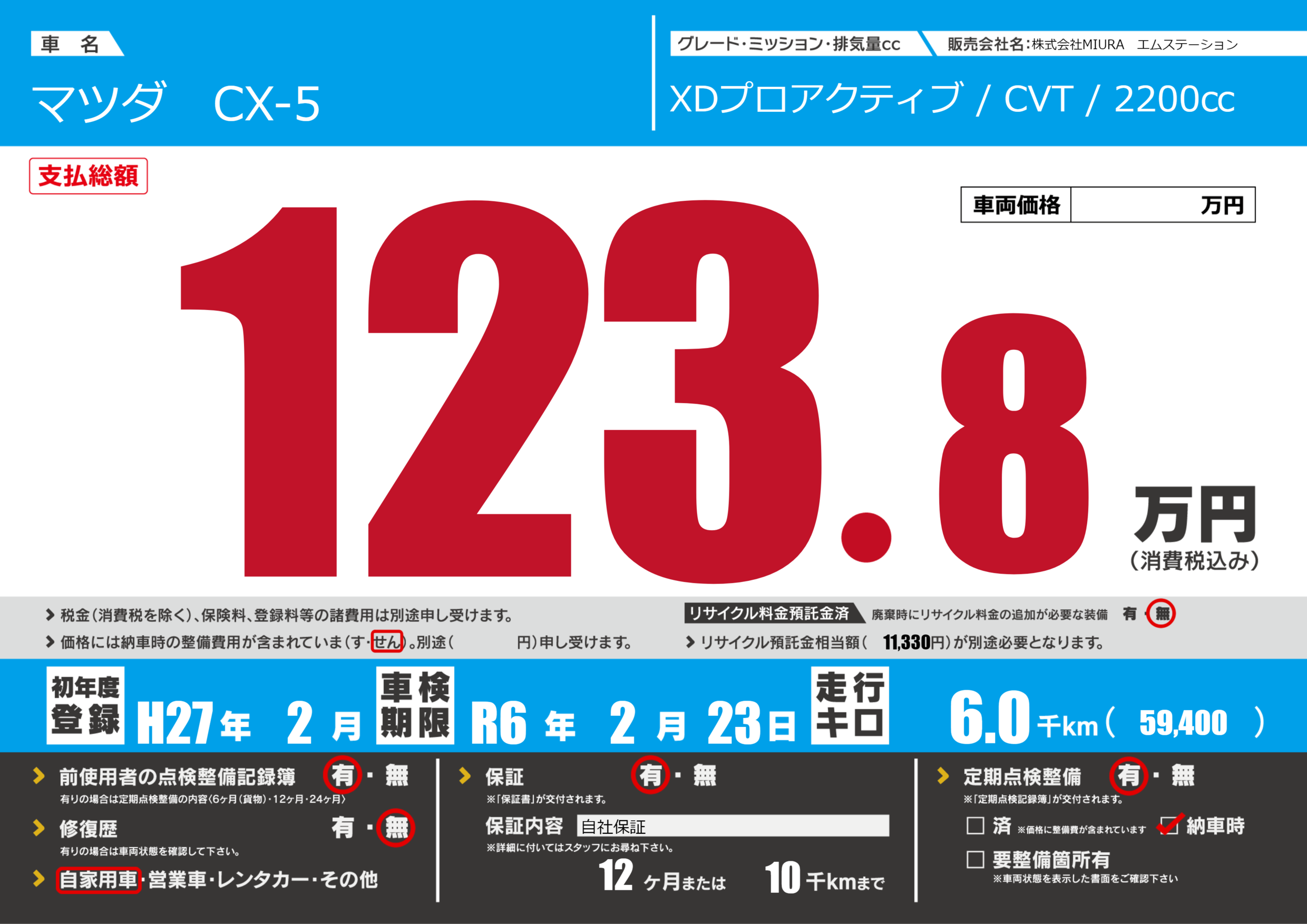 | 車検制限 | R6年 2月 23日 | ||