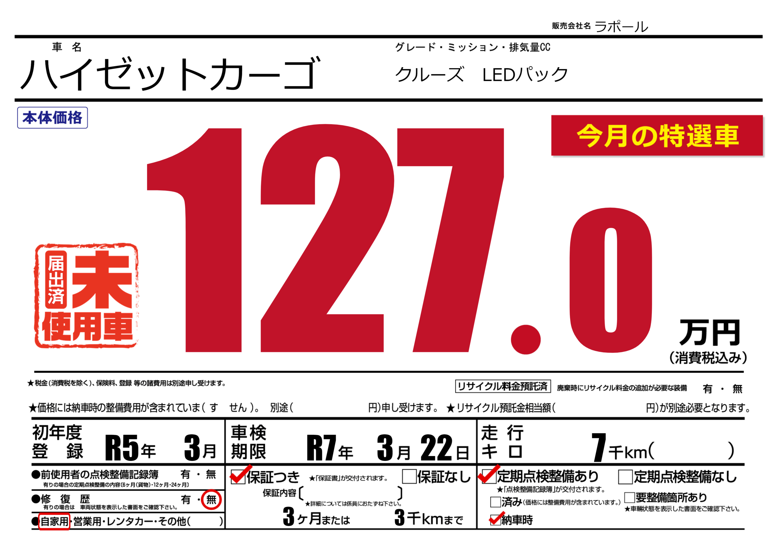 保証付き 保証内容(---) 3ヶ月または(3)千kmまで |