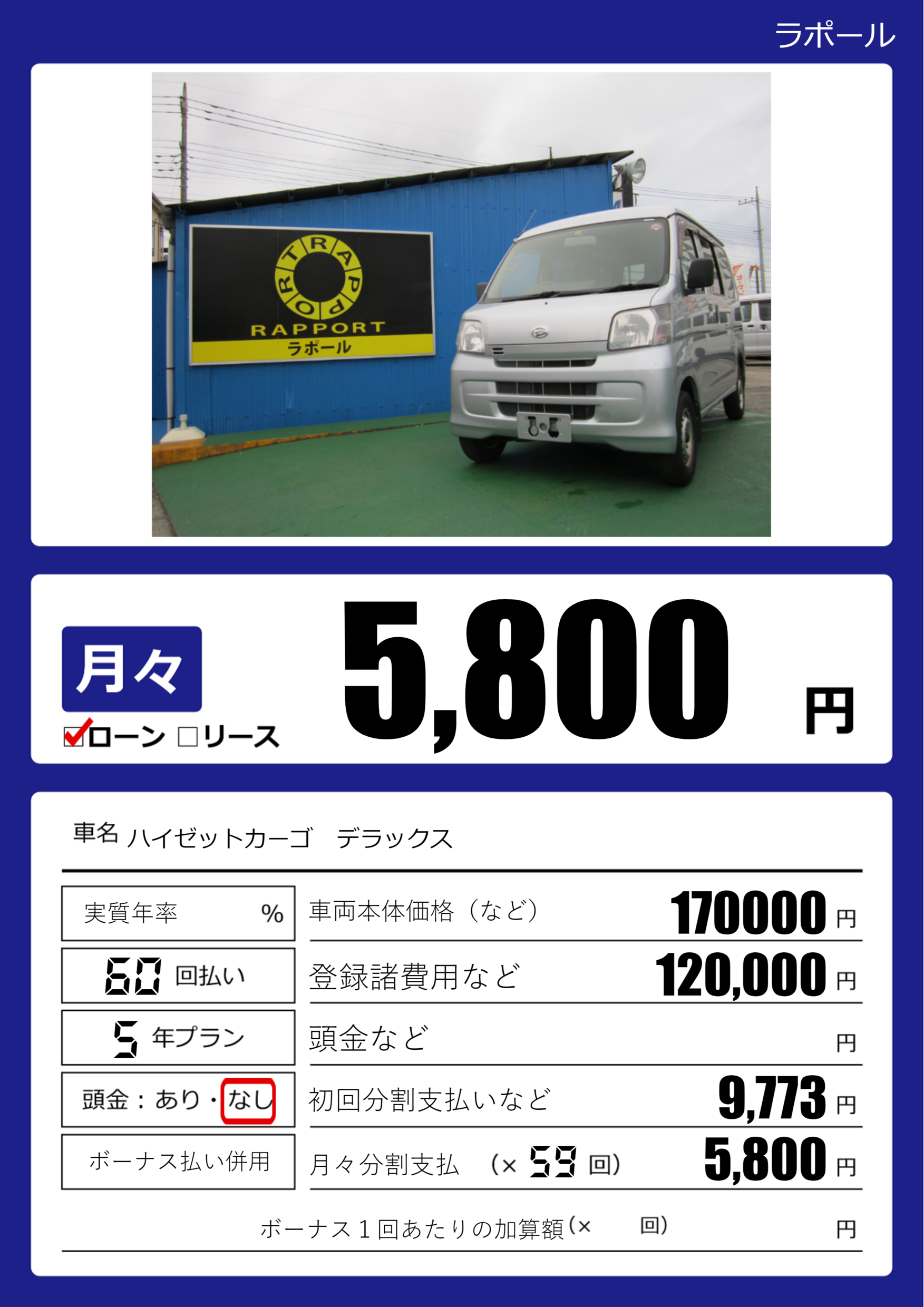 | 車名 | ハイゼットカーゴ デラックス | グレード ミッション 排気量 |
