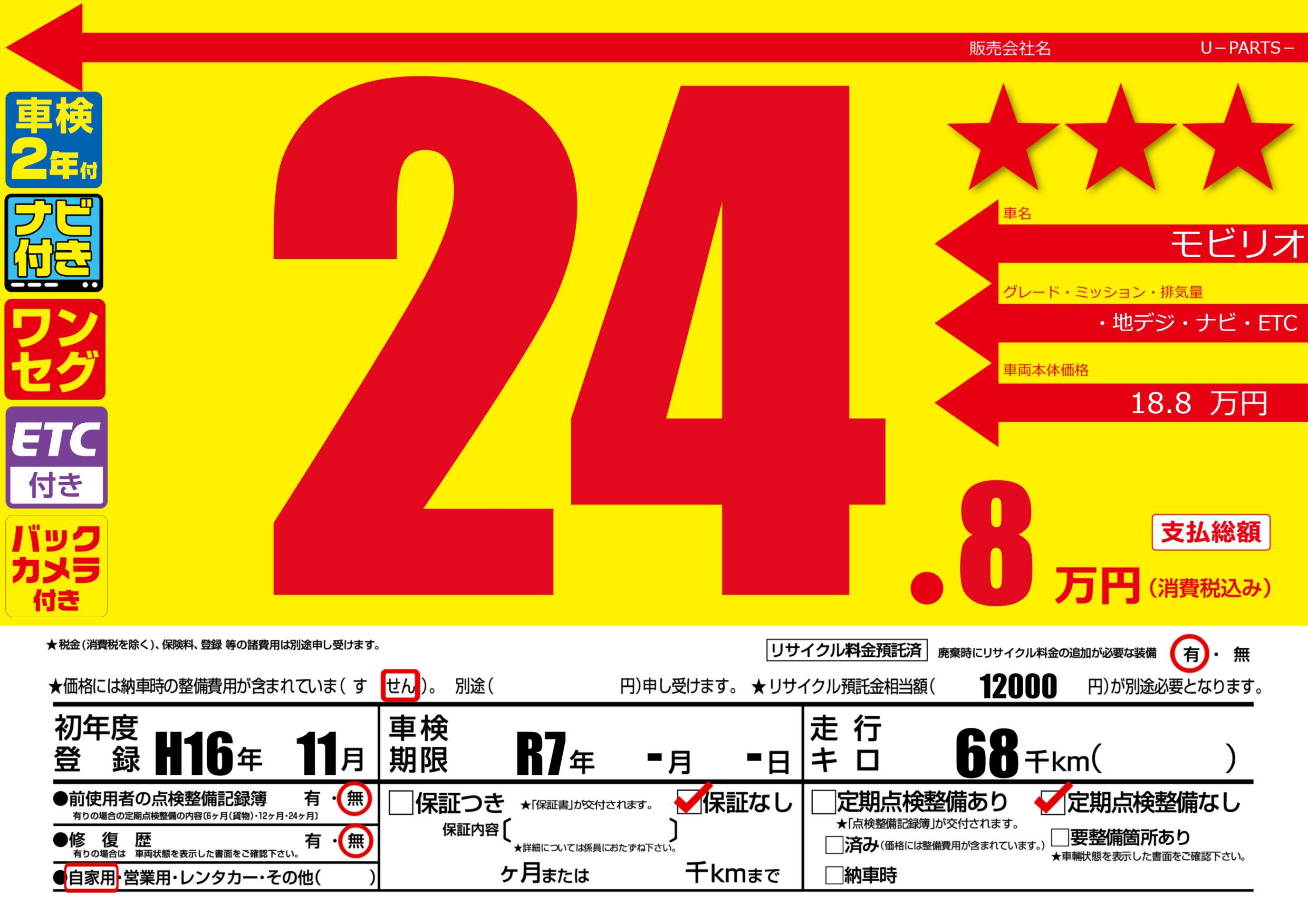 | 車名 | モビリオ | グレード ミッション 排気量 |
