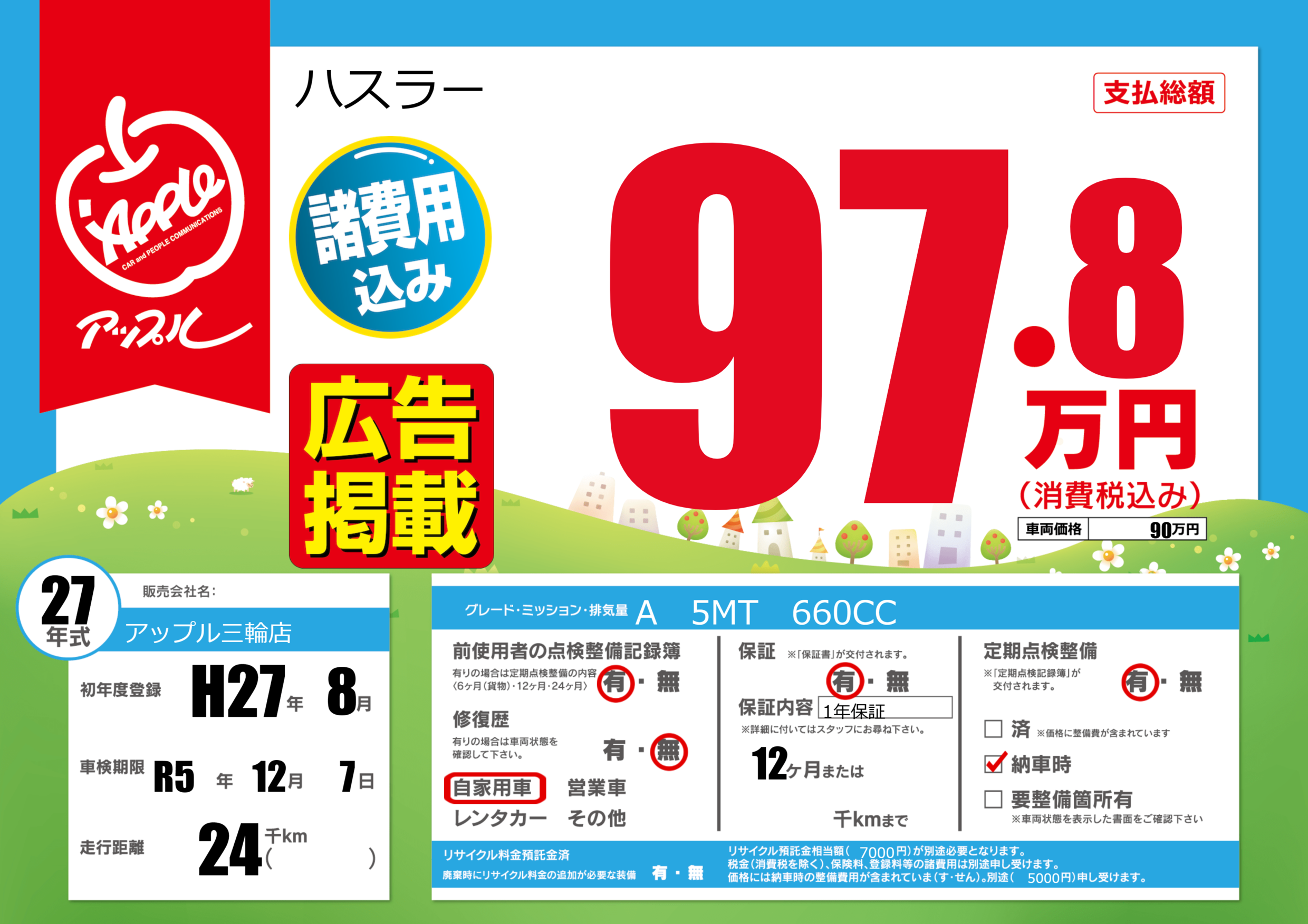 | 車名 | ハスラー | グレード ミッション 排気量 |
