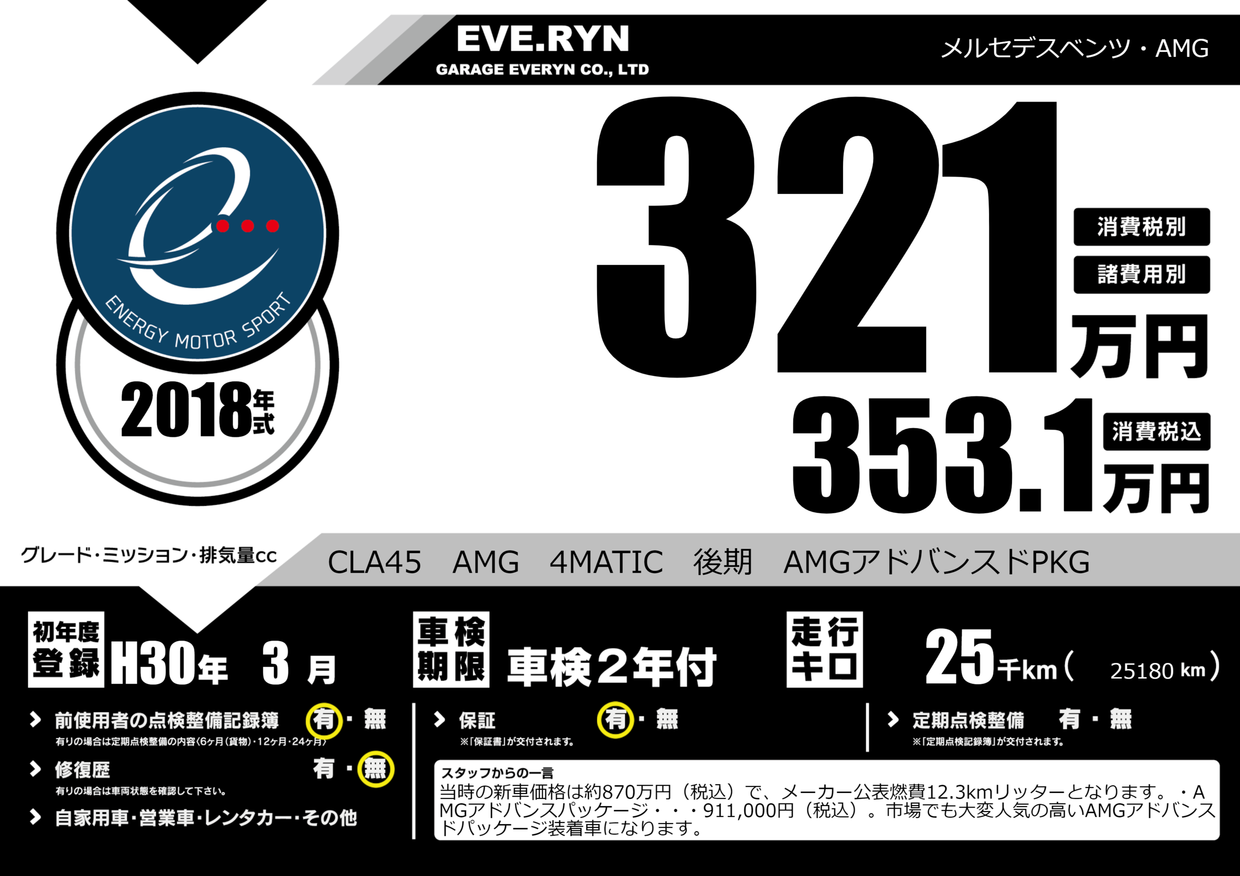 CLA45 AMG 4MATIC 後期 AMGアドバンスドPKG |