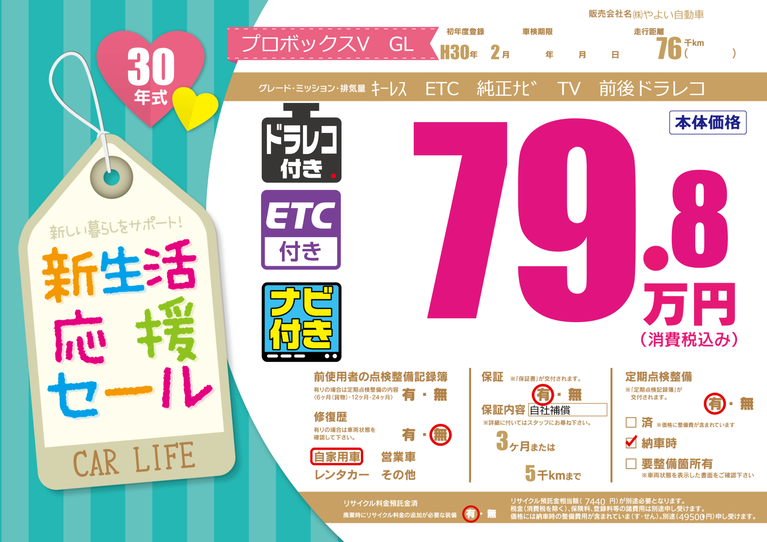 | 定期点検整備 | 定期点検整備あり 納車時あり | ||