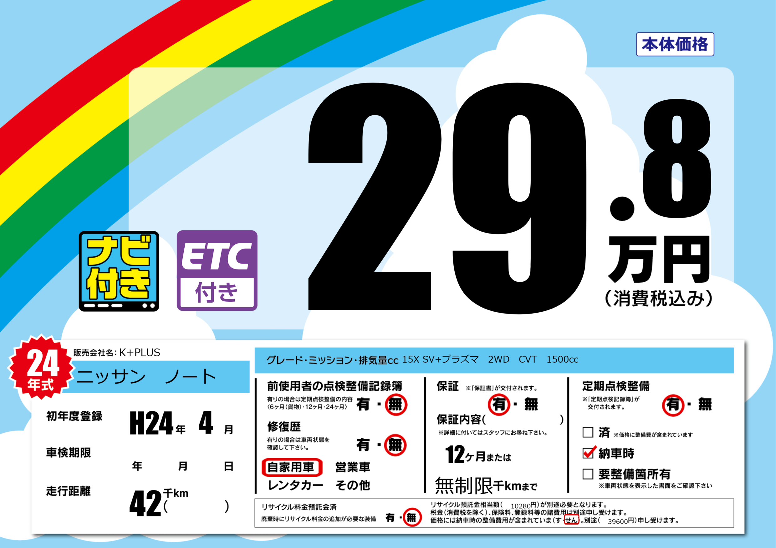 | 走行キロ | 4.2万km | 初年度登録 | H24年4月 |