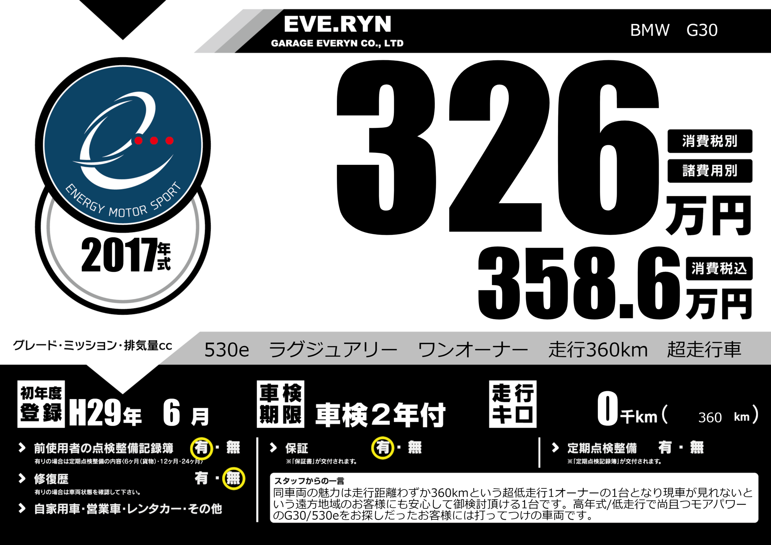 530e ラグジュアリー ワンオーナー 走行360km 超走行車 |