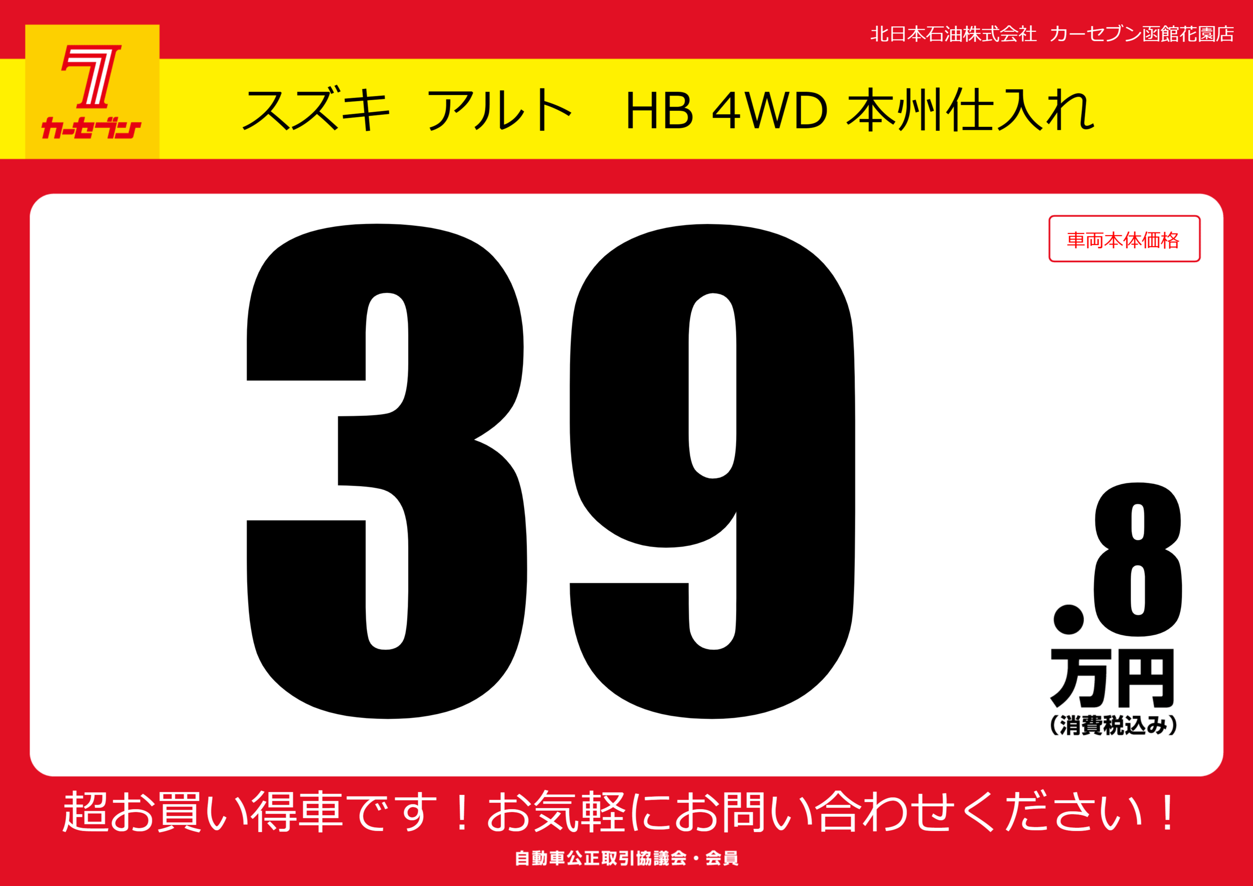 | 車名 | スズキ アルト HB 4WD 本州仕入れ | グレード ミッション 排気量 |