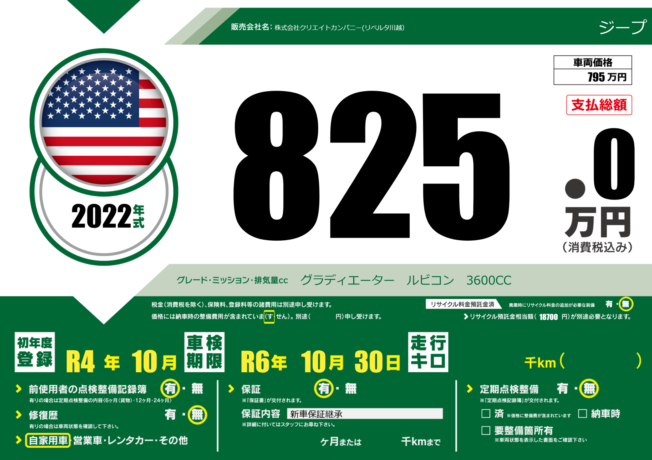 | 走行キロ | - | 初年度登録 | R4年10月 |