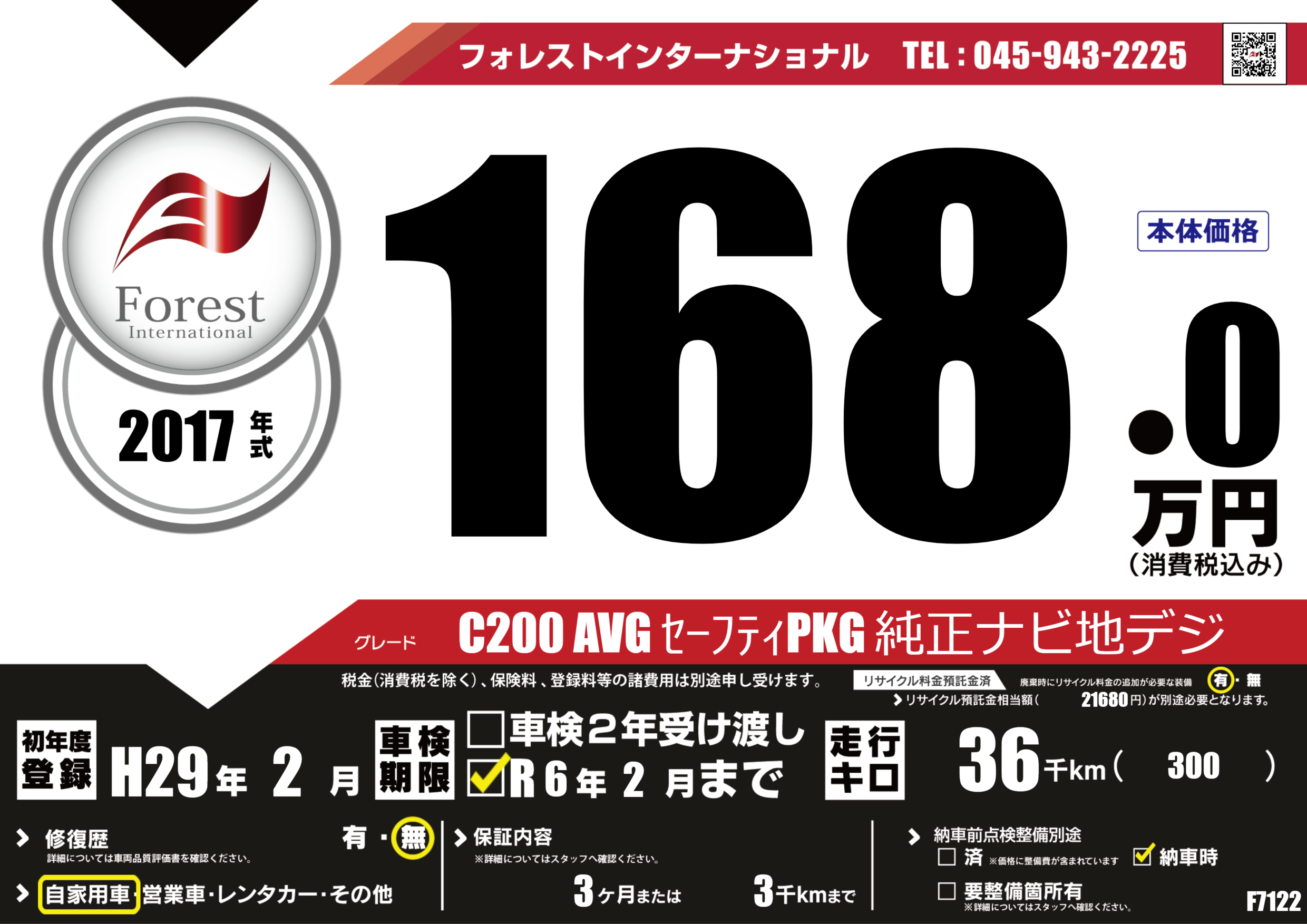 C200 AVG セーフティPKG 純正ナビ地デジ |