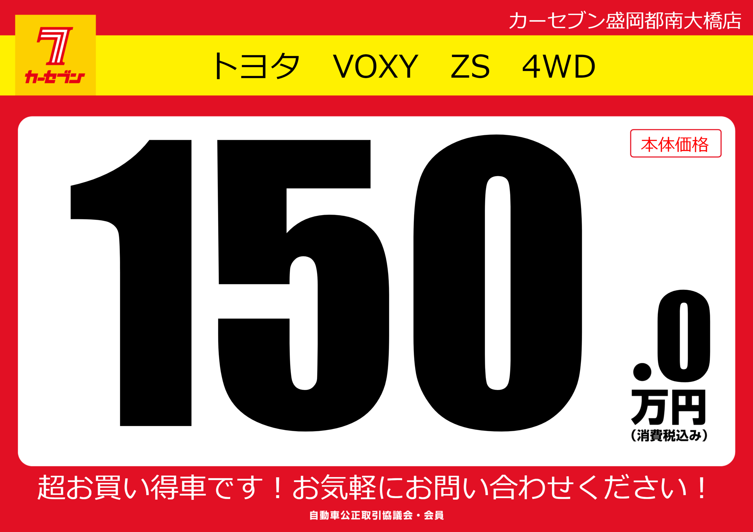 | 車名 | トヨタ VOXY ZS 4WD | グレード ミッション 排気量 |