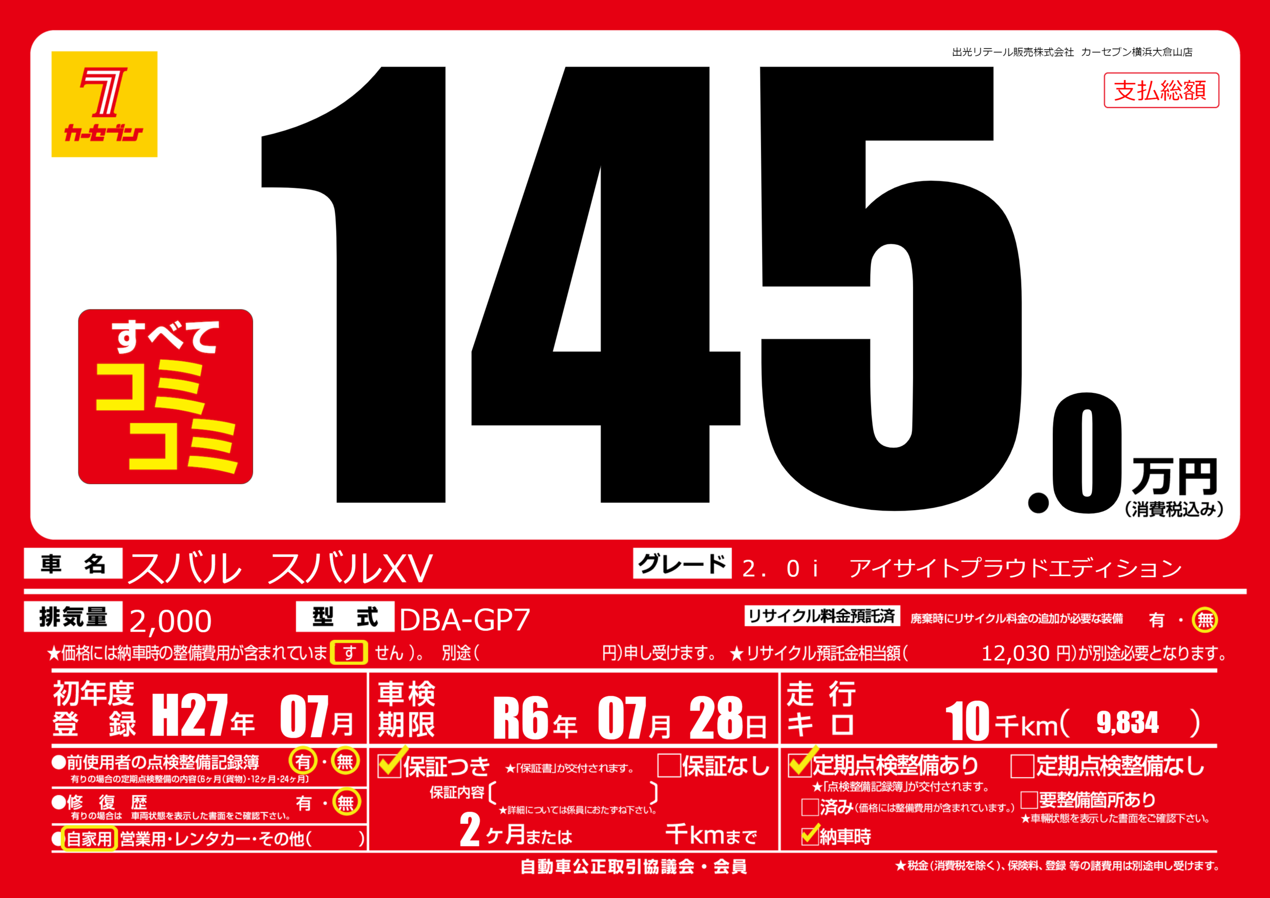| 車検制限 | R6年 07月 28日 | ||