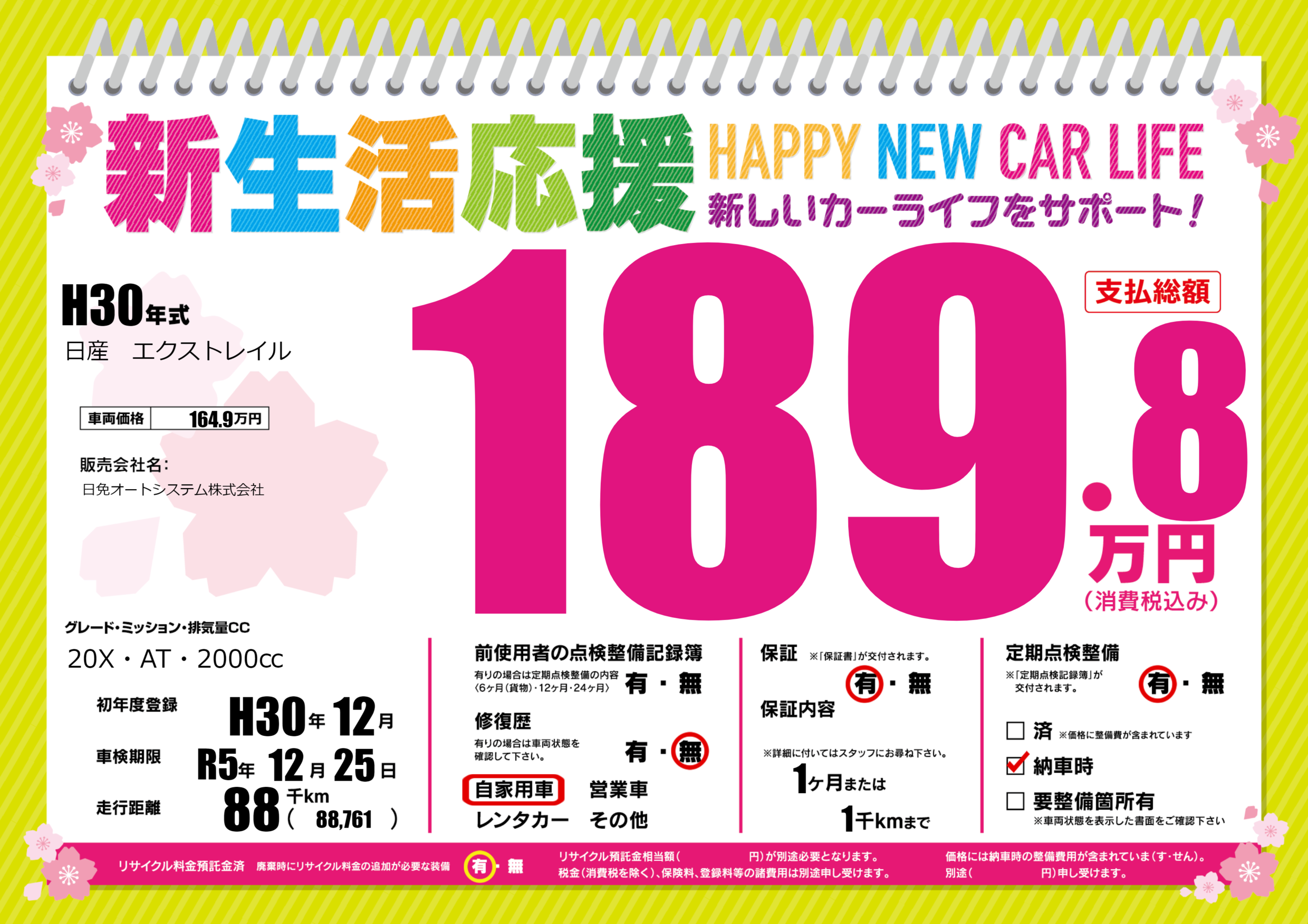 | 車名 | 日産 エクストレイル | グレード ミッション 排気量 |