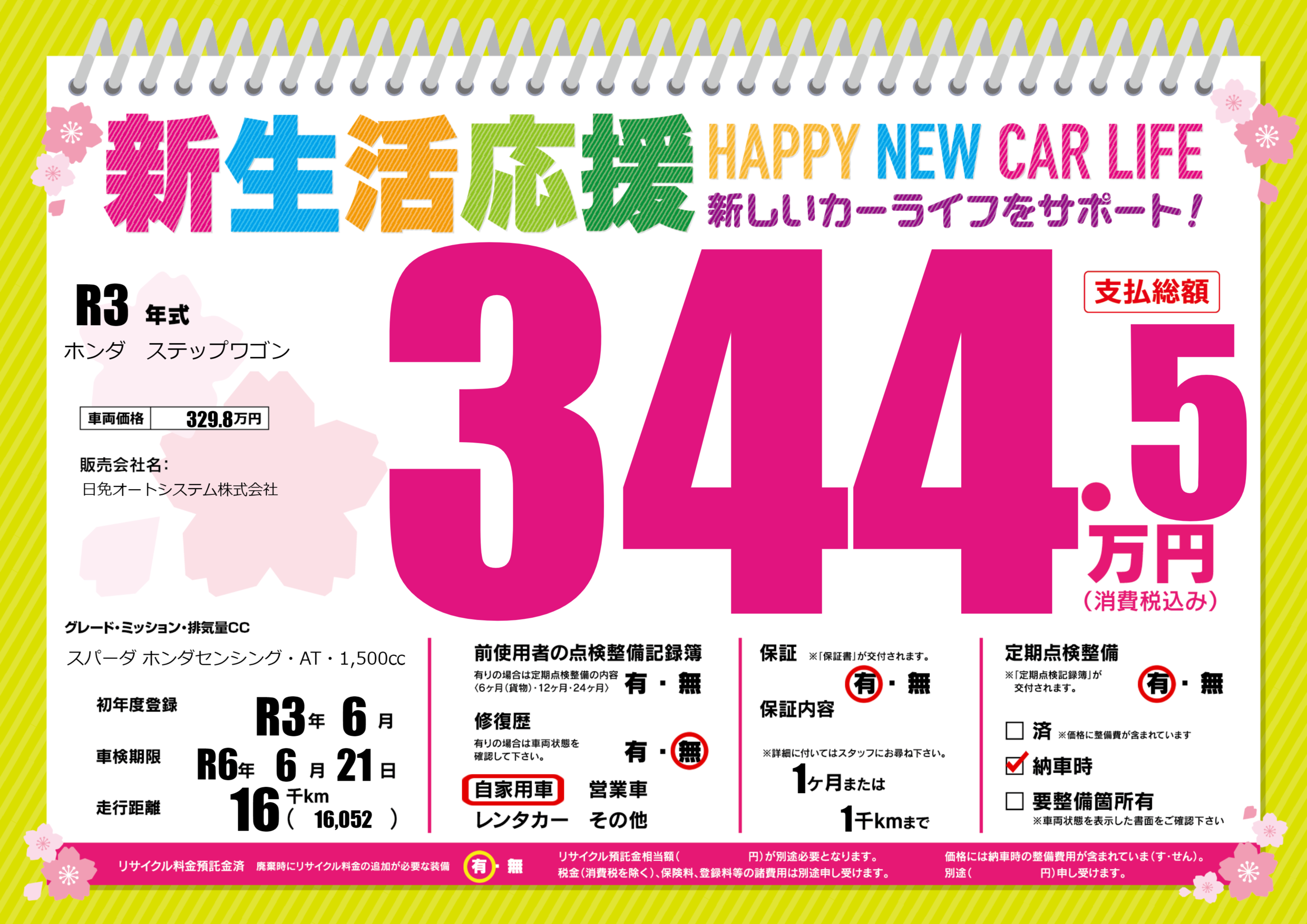 | 車名 | ホンダ ステップワゴン | グレード ミッション 排気量 |