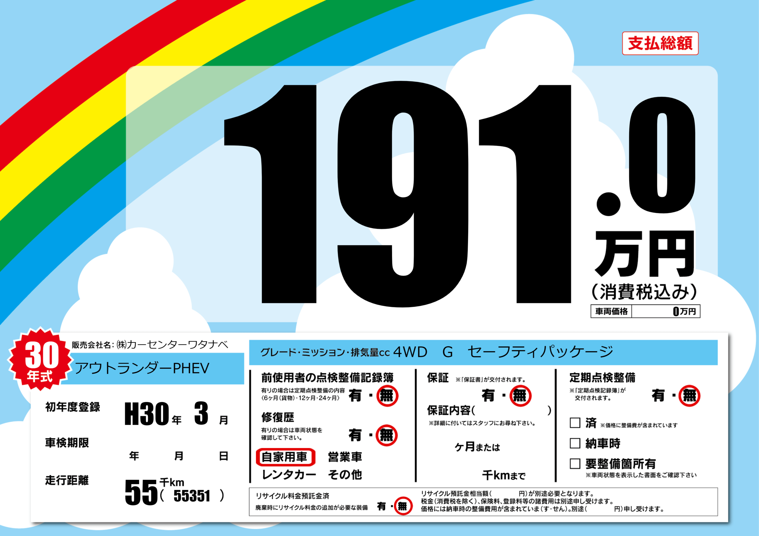 | 車名 | アウトランダーPHEV | グレード ミッション 排気量 |