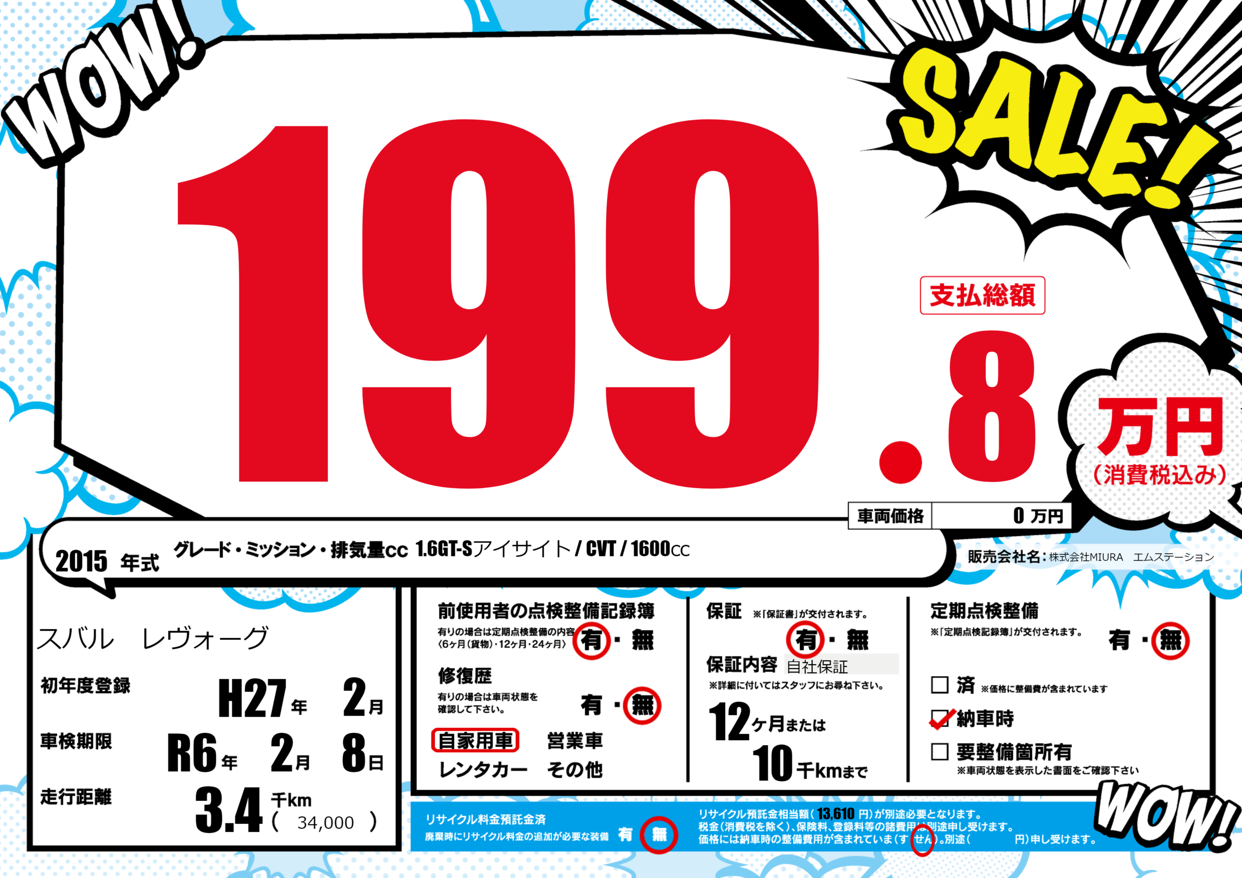 | 走行キロ | 0.3万km | ||