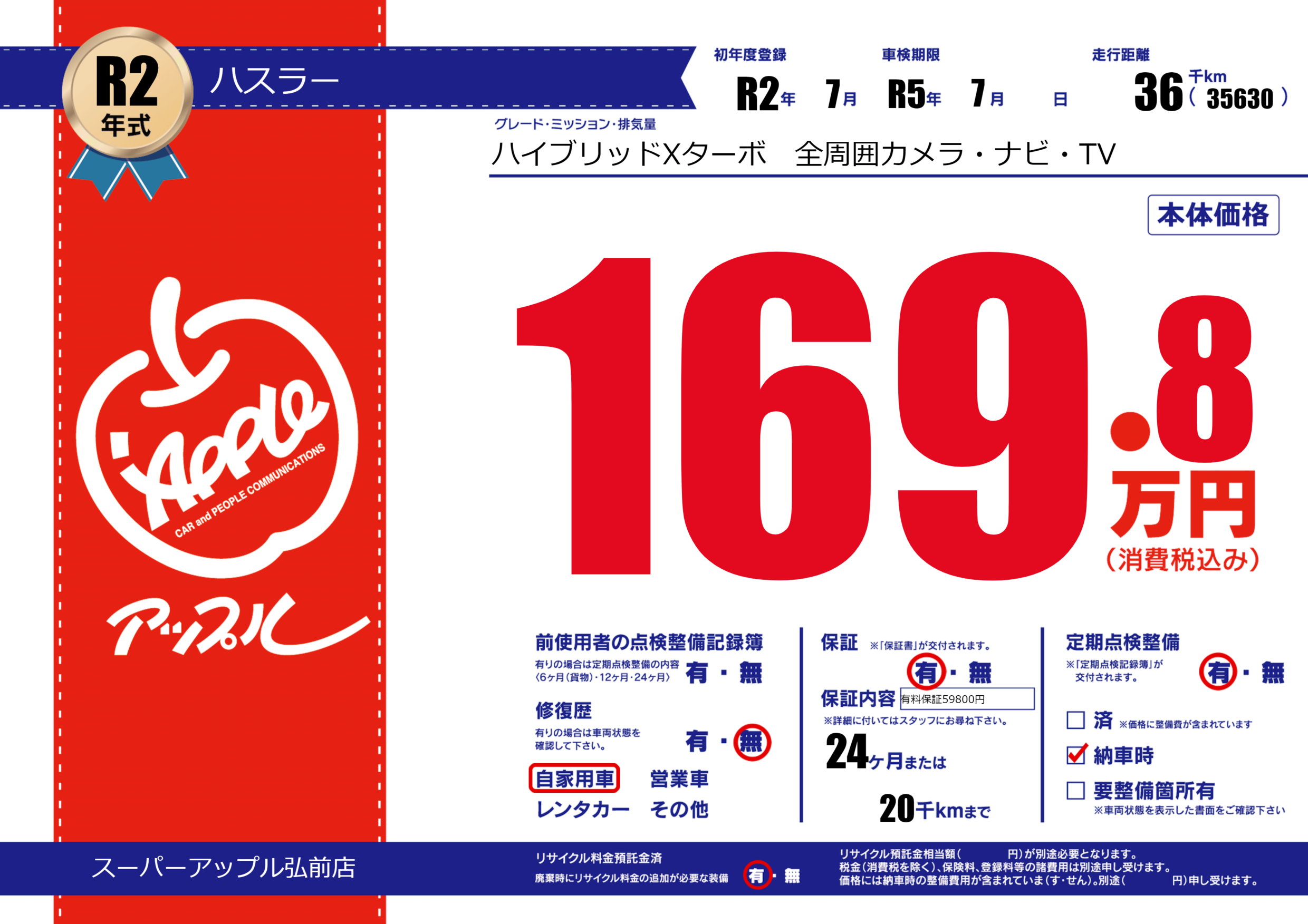 | 車名 | ハスラー | グレード ミッション 排気量 |
