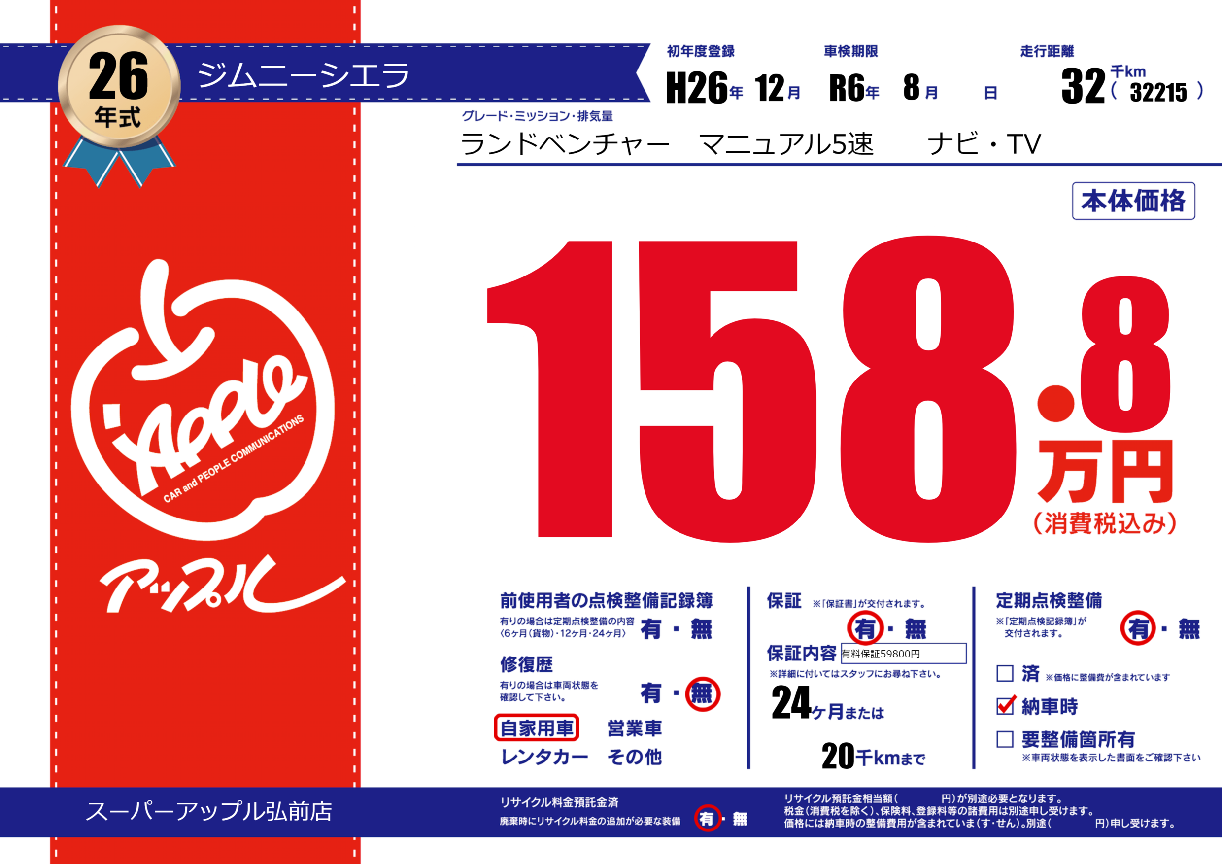 | 車名 | ジムニーシエラ | グレード ミッション 排気量 |