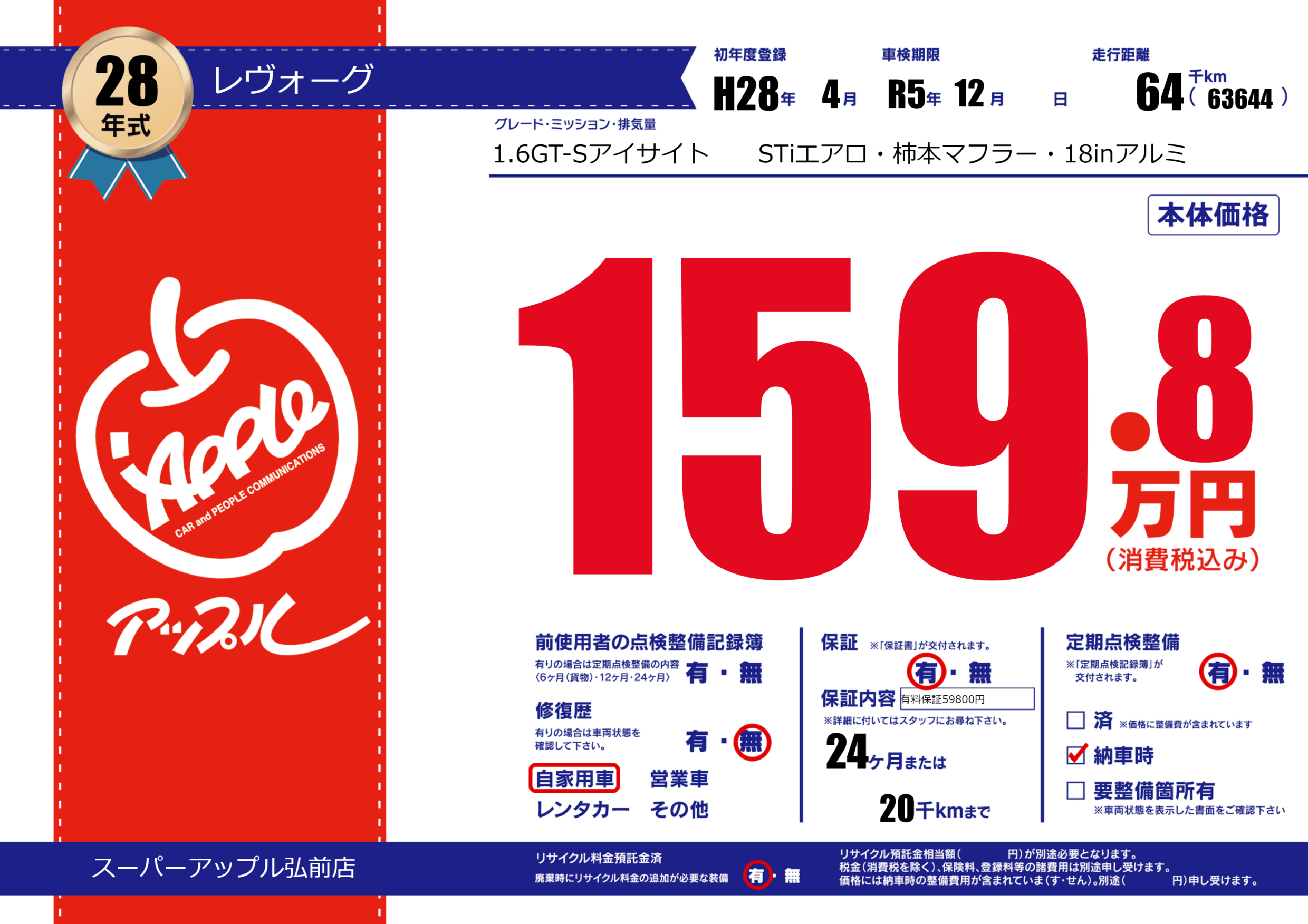 | 車名 | レヴォーグ | グレード ミッション 排気量 |