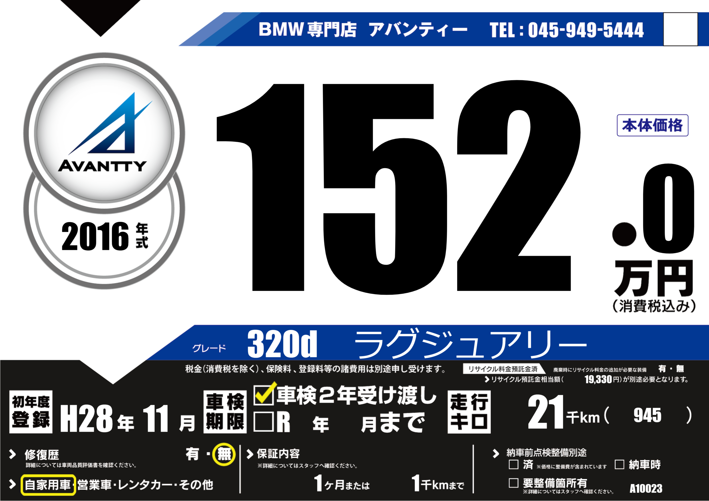 | 走行キロ | 2.1万km | 初年度登録 | H28年11月 |