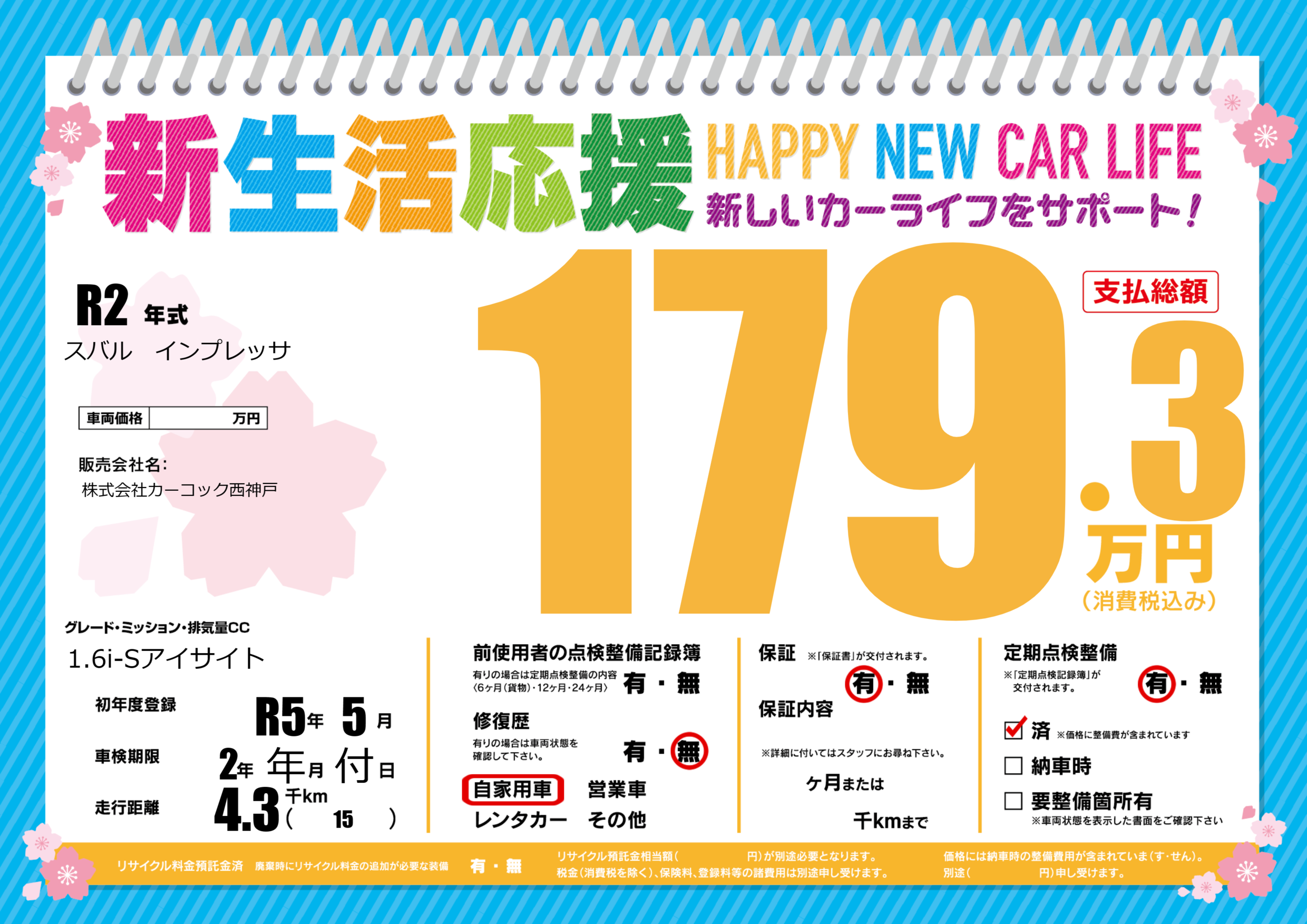 | 車名 | スバル インプレッサ | グレード ミッション 排気量 |