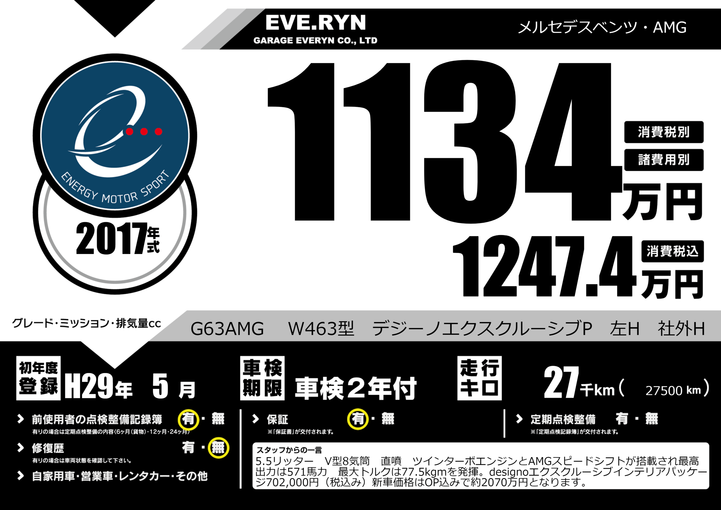 | 車名 | メルセデスベンツ・AMG | グレード ミッション 排気量 |