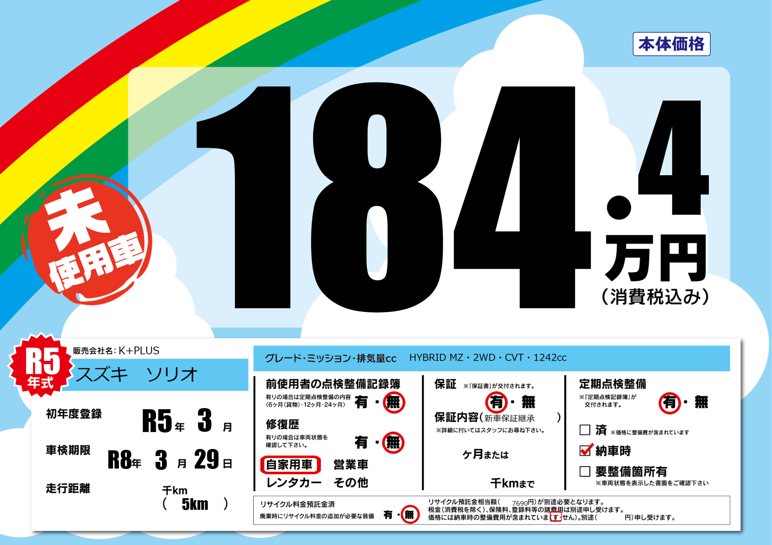| 走行キロ | - | 初年度登録 | R5年3月 |