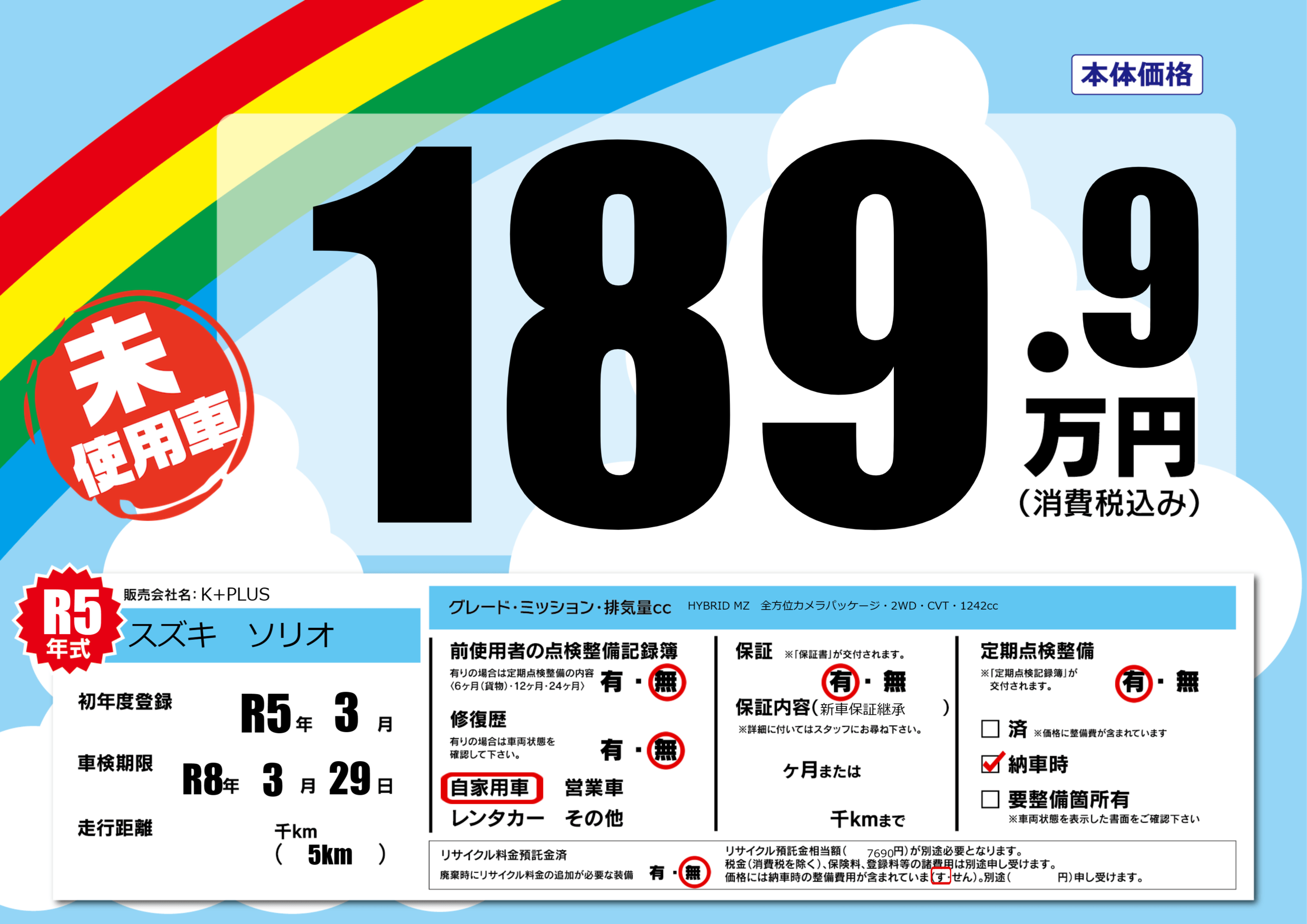 | 走行キロ | - | 初年度登録 | R5年3月 |