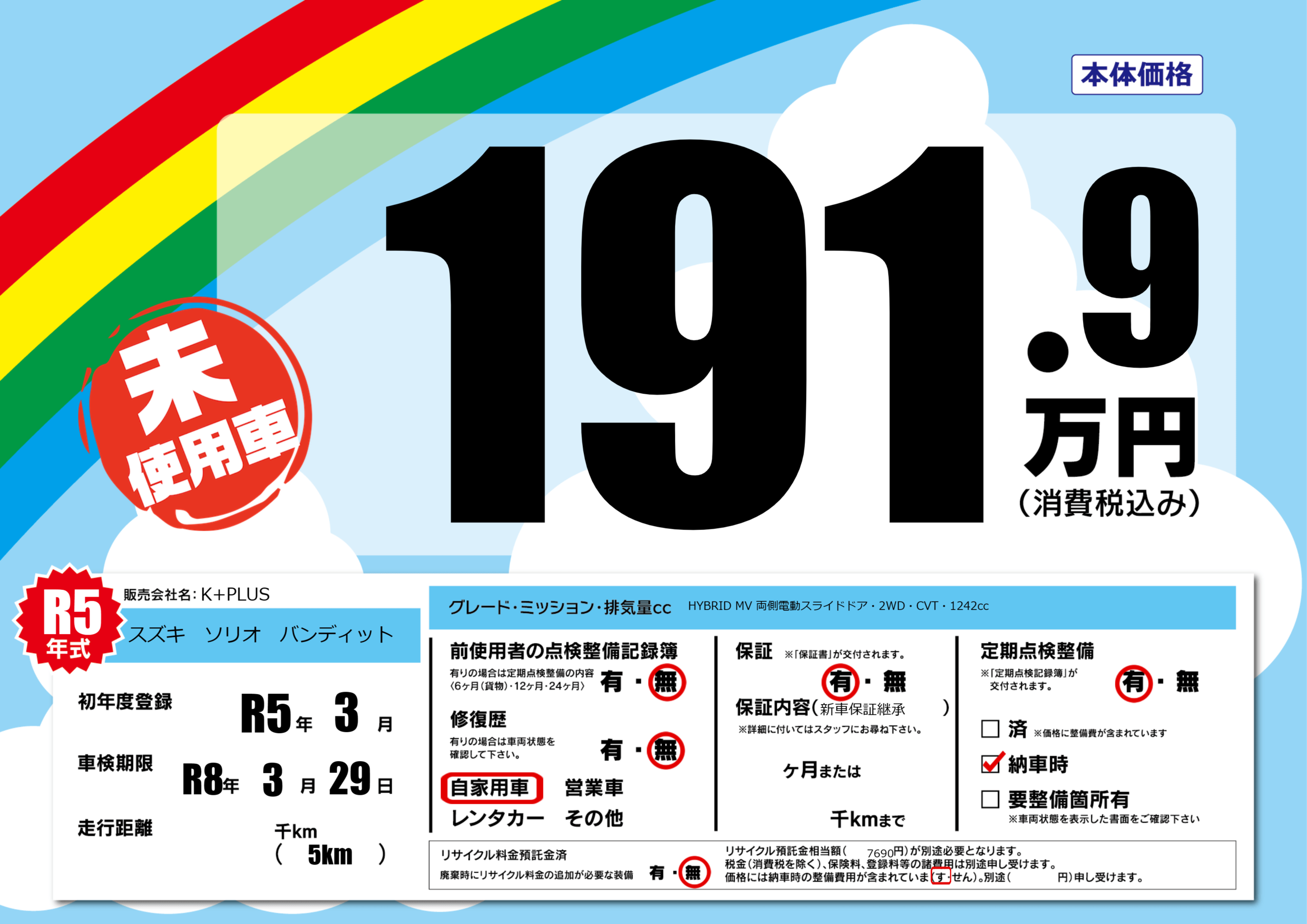| 走行キロ | - | 初年度登録 | R5年3月 |