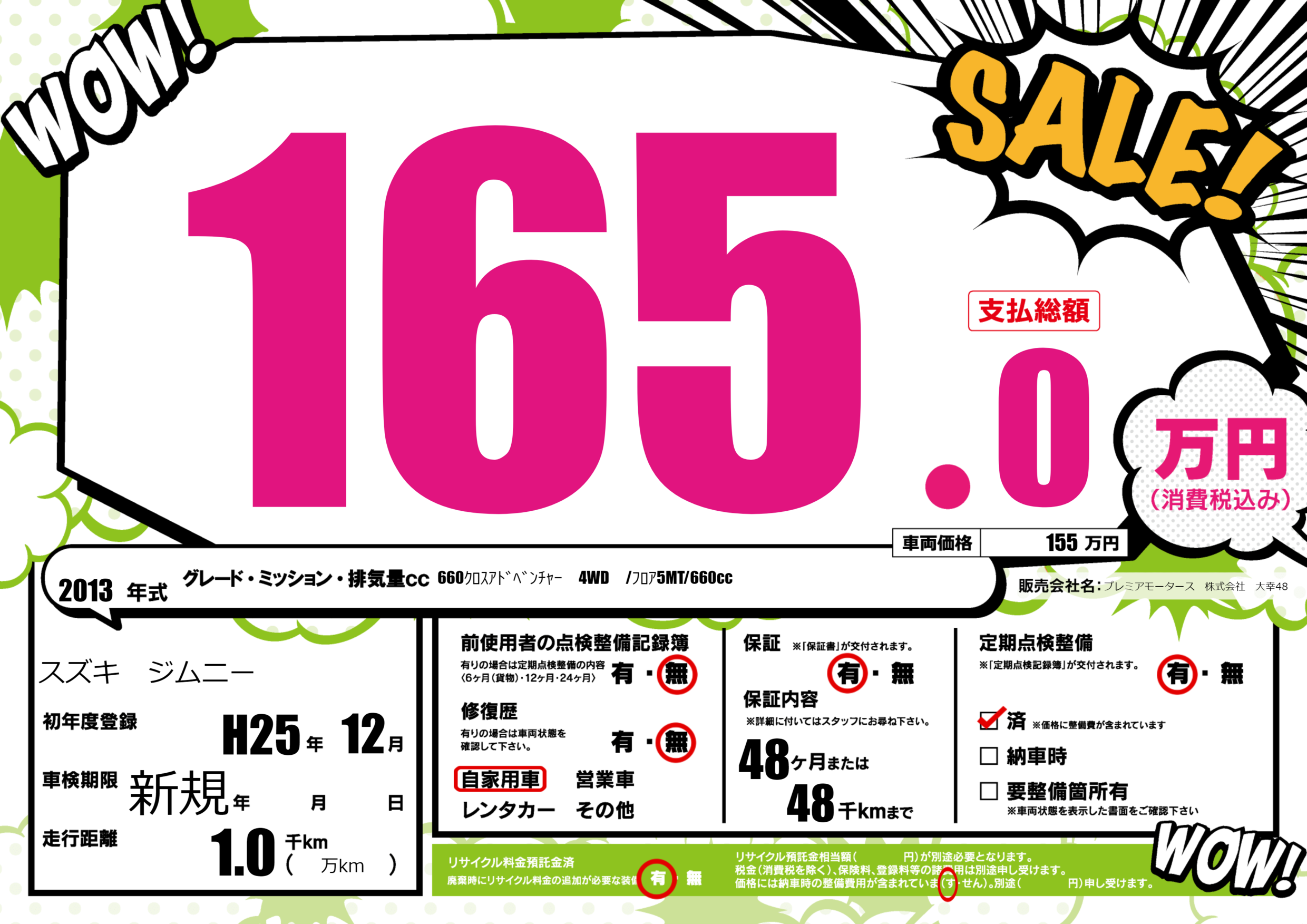 | 定期点検整備 | 定期点検整備あり 定期点検整備済み | ||