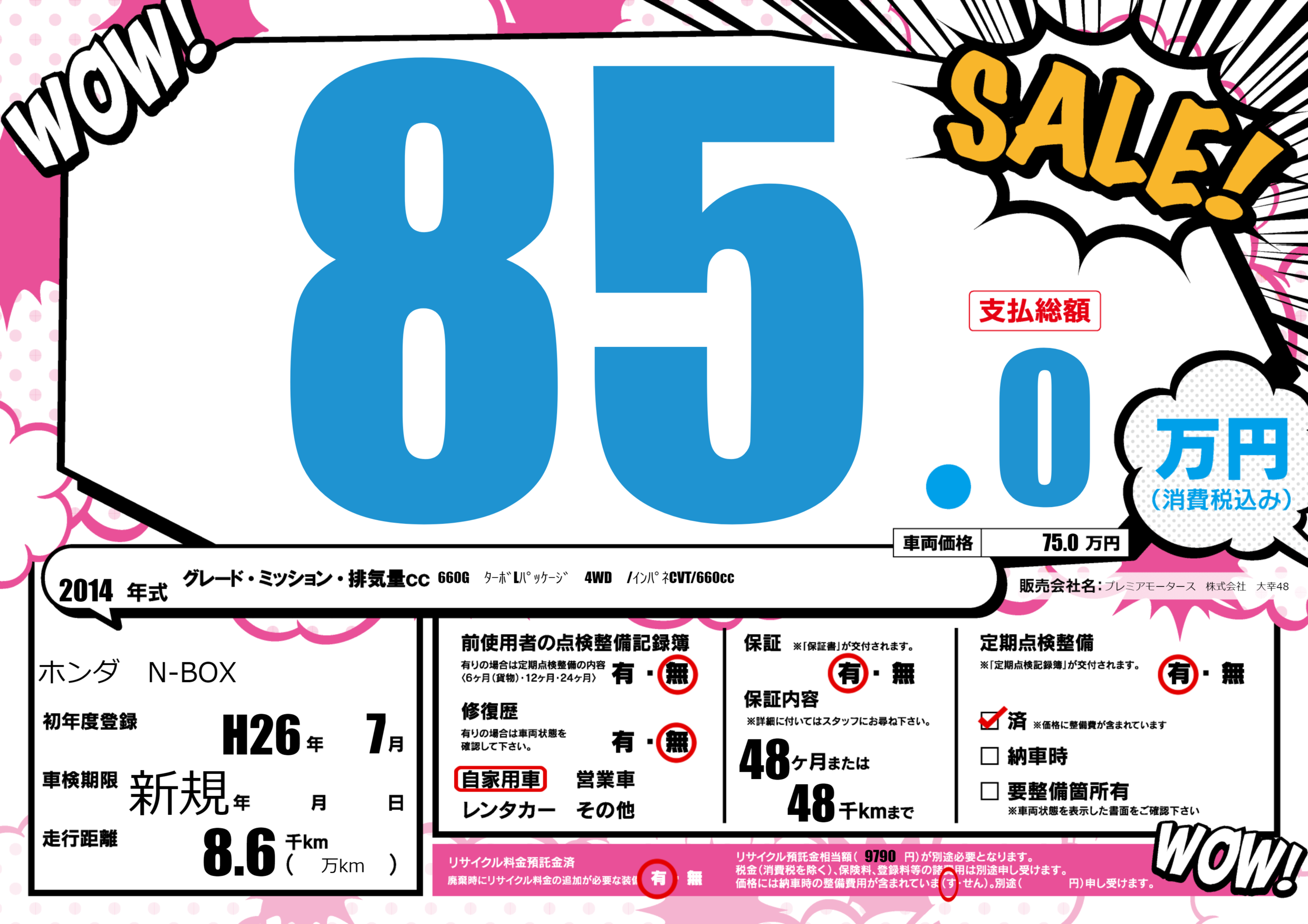 | 定期点検整備 | 定期点検整備あり 定期点検整備済み | ||