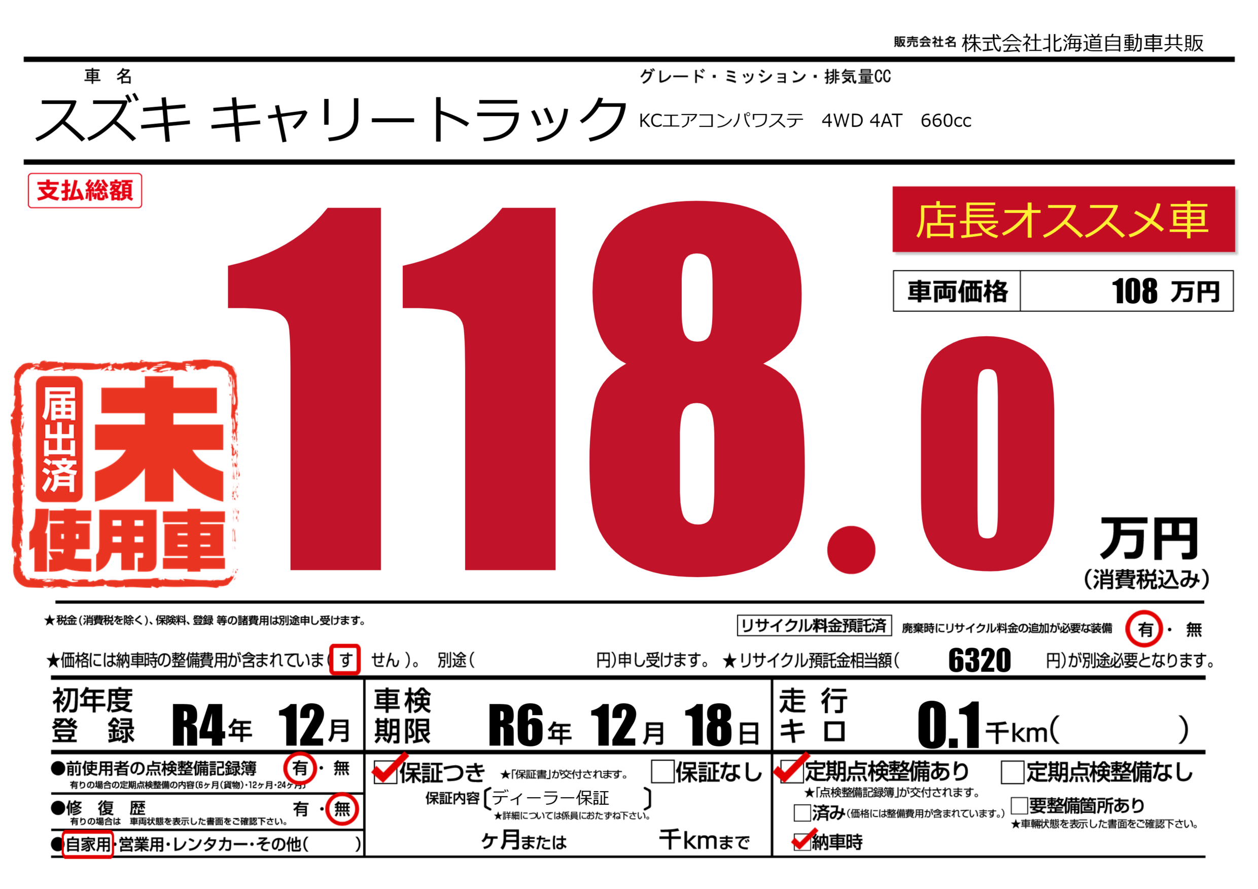 | 走行キロ | - | 初年度登録 | R4年12月 |